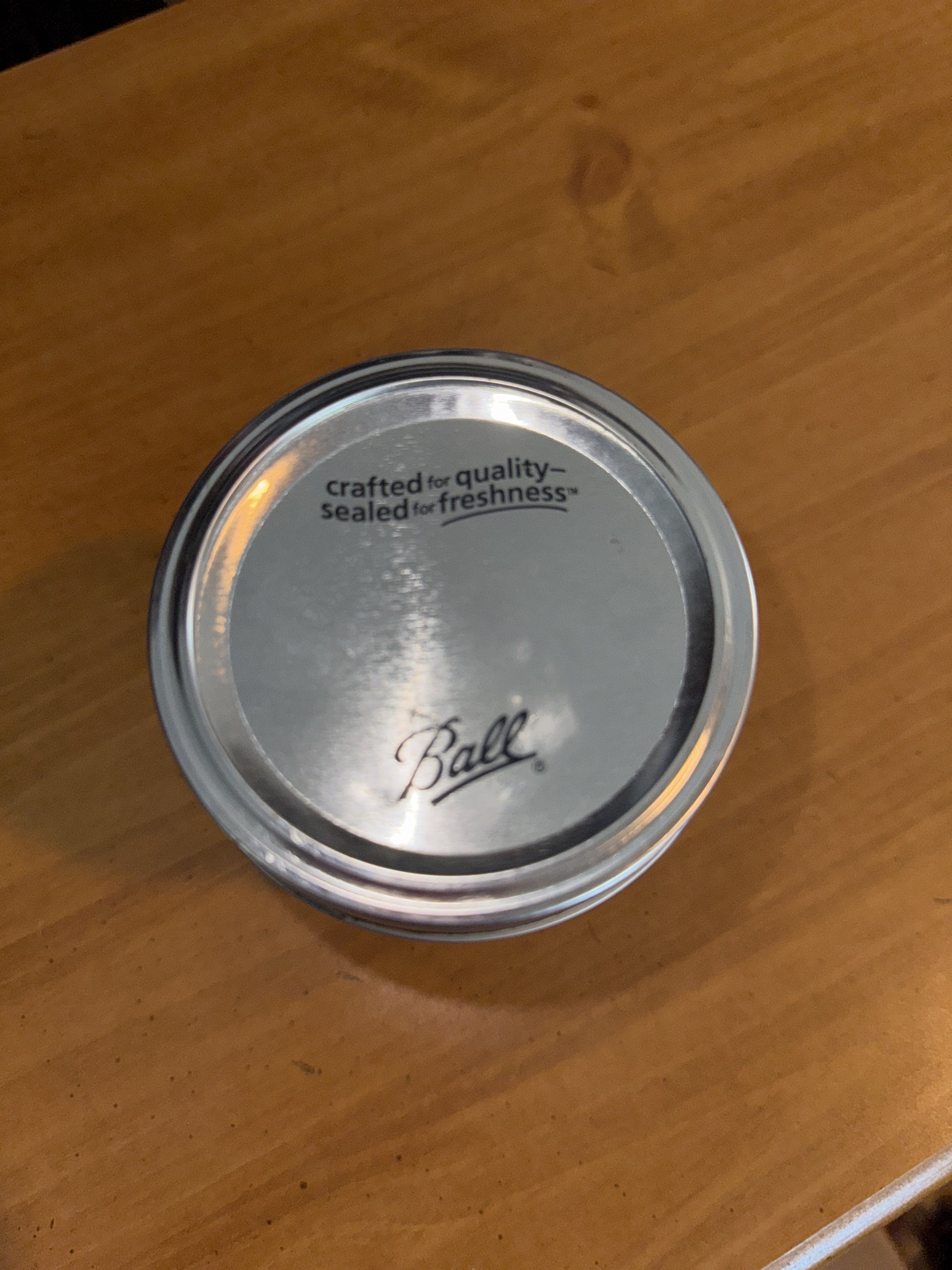 Ball Mason Jar With Lid 5" Tall Widemouth Glass 400 ML Grapes on one side. Excellent clean condition, no chips or cracks.