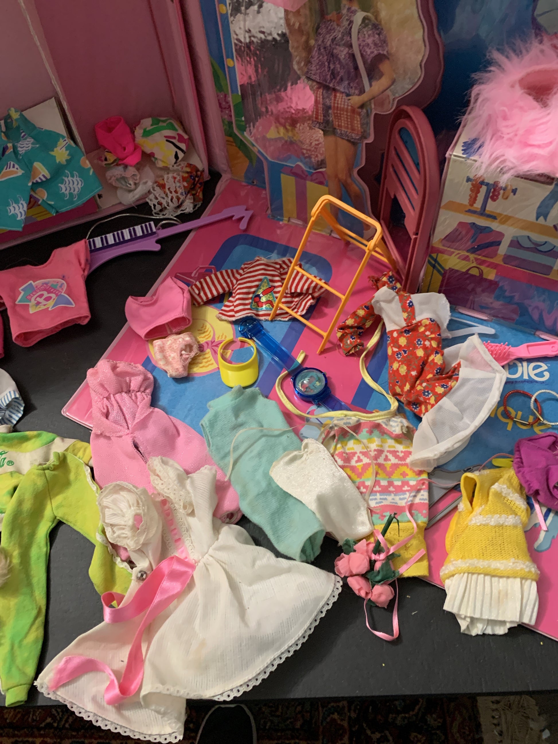 Barbie 1990 Boutique Case, Clothing, Small Accessories, Furniture, Extras