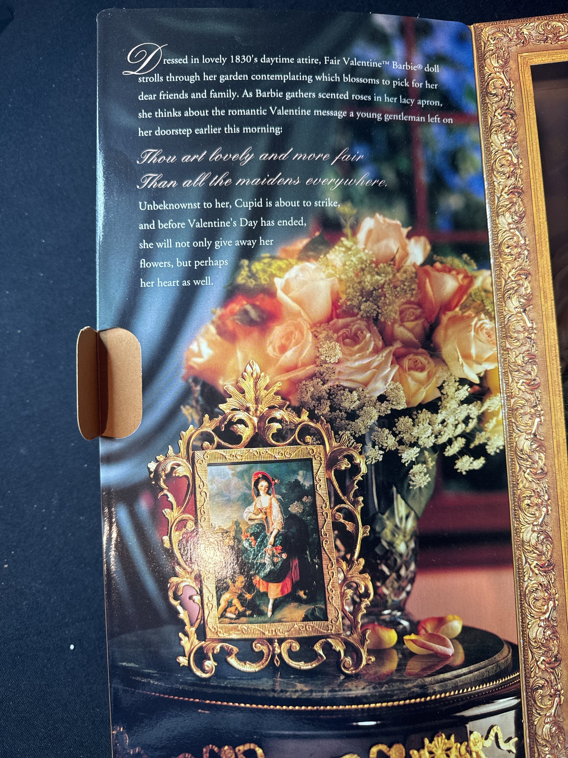 Barbie Fair Valentine 1997 Doll Be My Valentine Collector Series Hallmark New in Box. Never opened. Contains 11.5" Doll, gown, boots, hair piece, doll stand.