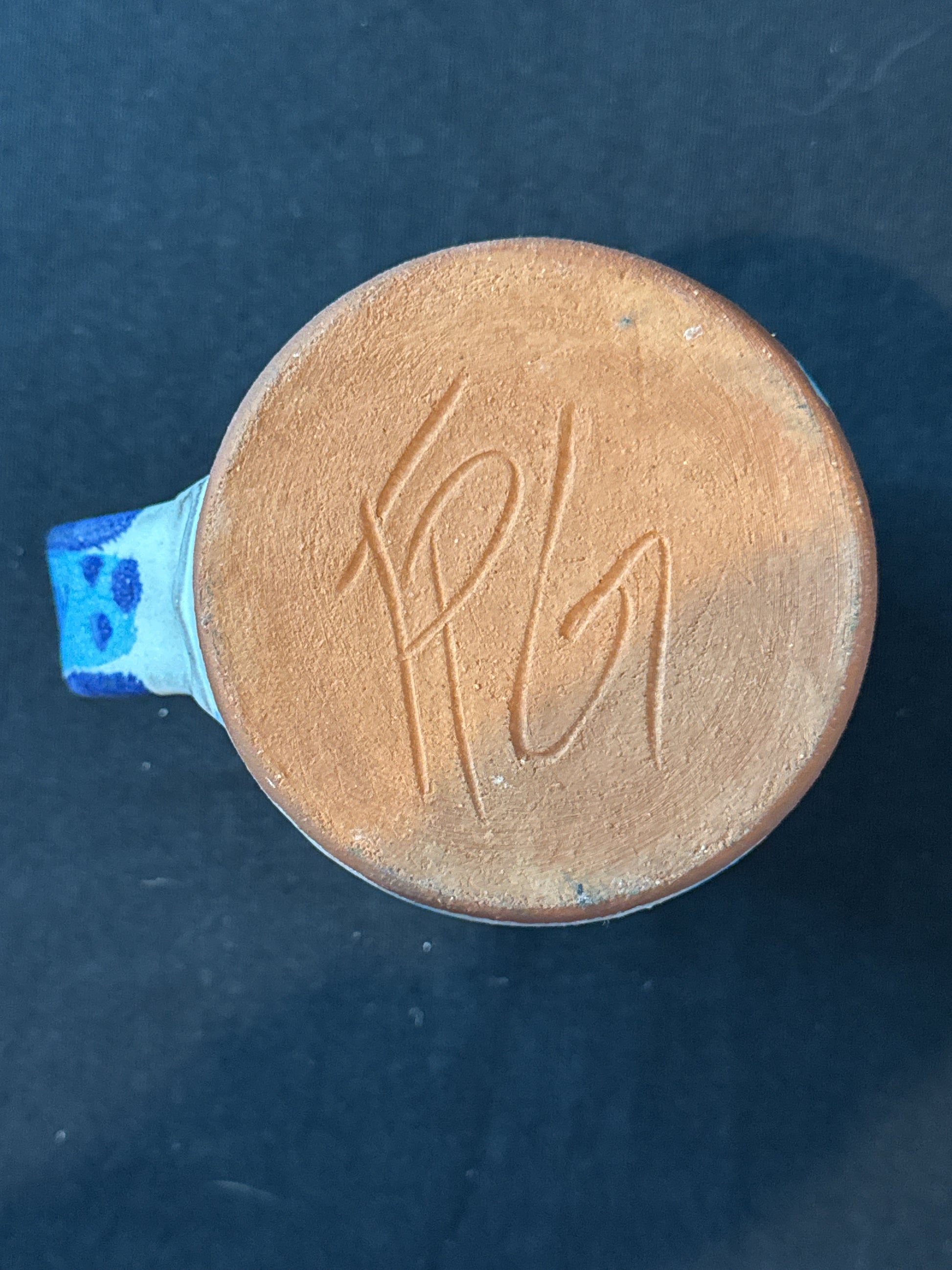 Blue Cobalt Brown Glazed Art Pottery Coffee Mug Cup Signed 3.5" Tall. Excellent condition, no chips or cracks. D13
