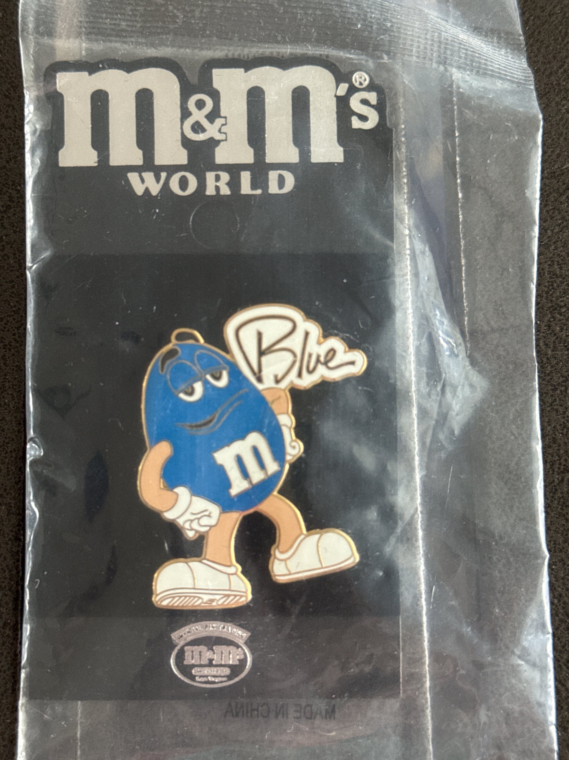 Blue M&M World Lapel Pin New in Plastic. Very Rare