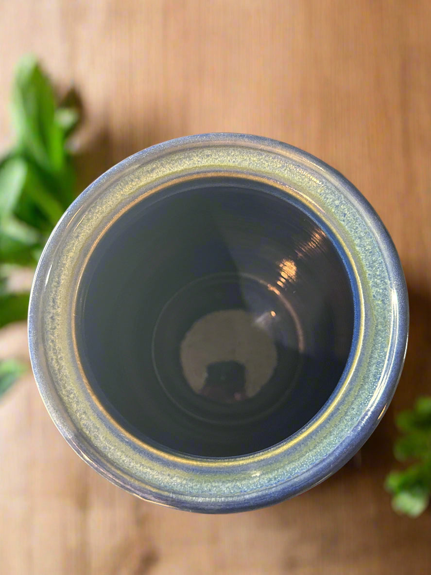 Blue Stoneware Canister w/ Lid 9" Tall Excellent Condition, No Chips or Cracks