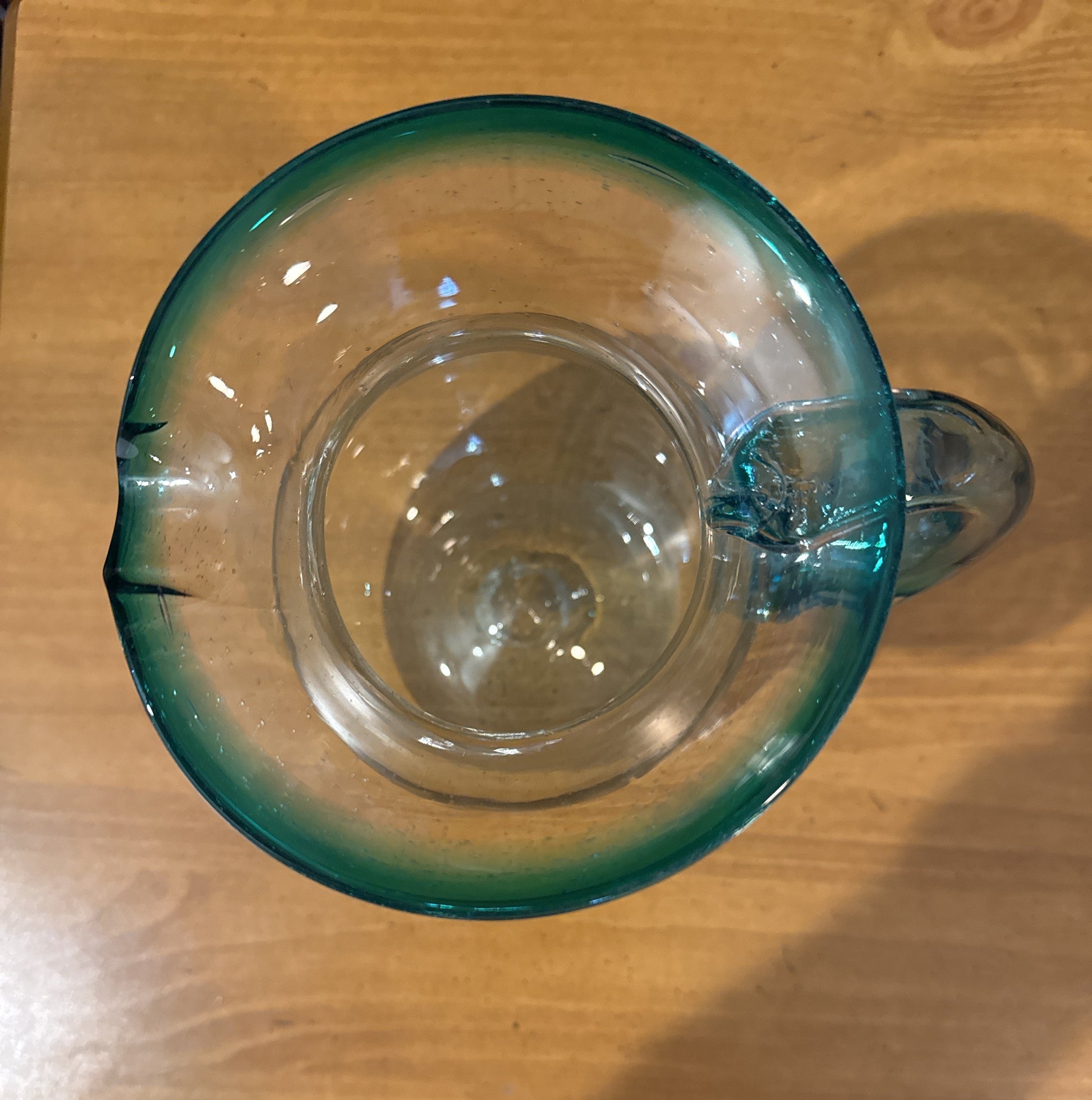 Bluish Clear Glass Pitcher 7" Tall Art Glass Hand Blown New. Excellent condition, no chips or cracks.