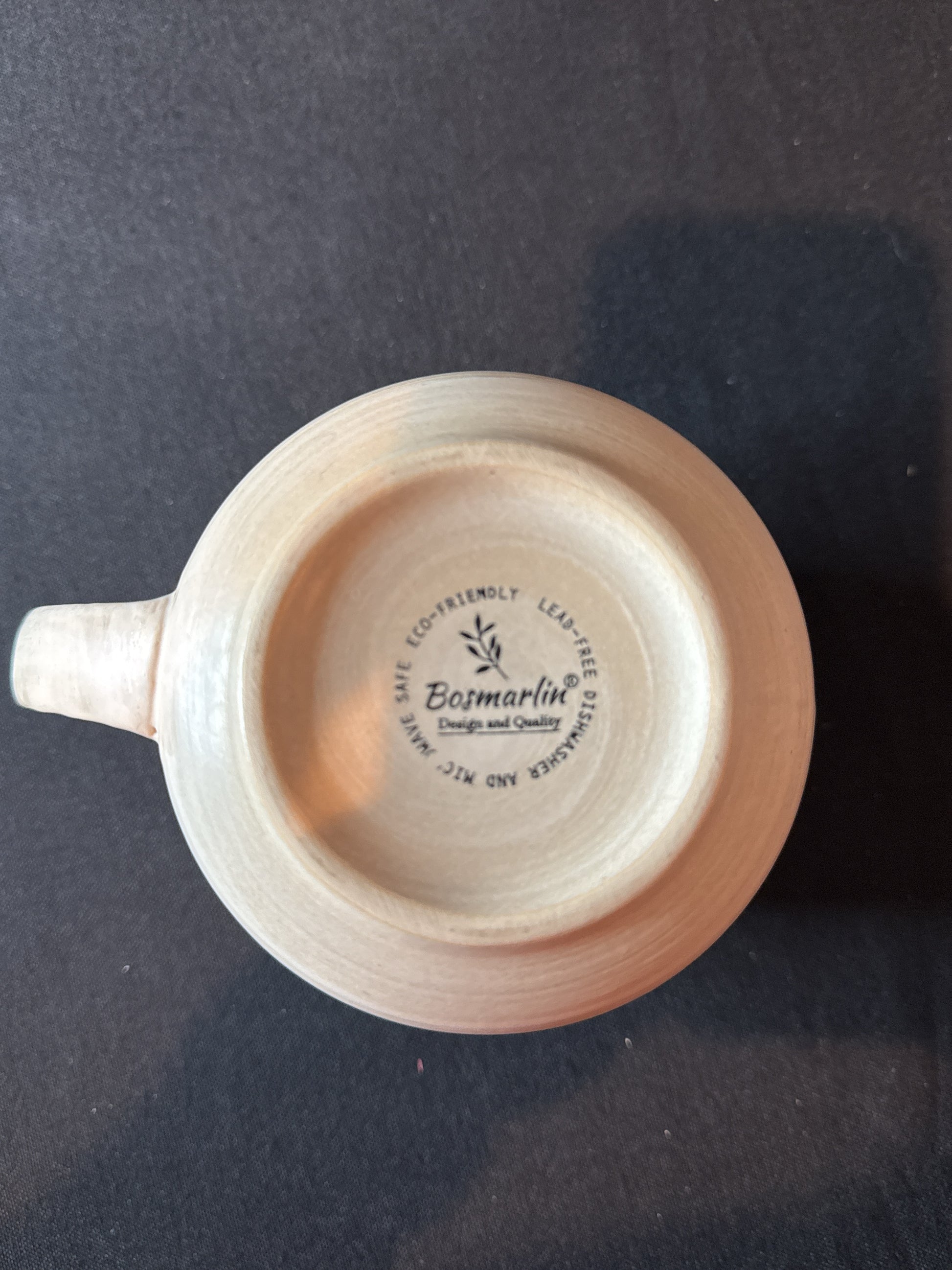 Bosmarlin Blue & Tan Extra large 26oz Ceramic Coffee Cup Mug Reactive Glaze 4 5/8" Tall