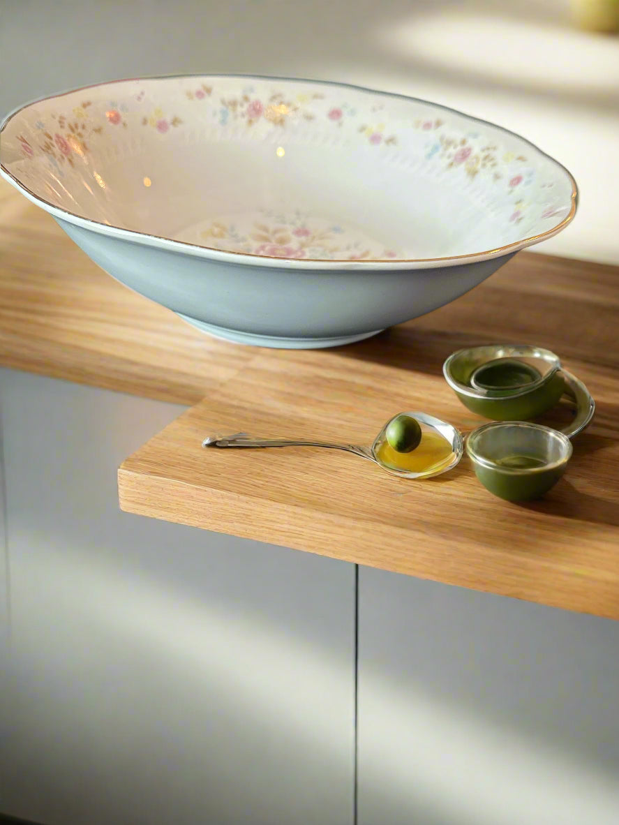 China 9" Bowl Porcelain Nanjing Pagoda Mark Floral Rose Gold Rim 2 5/8" Tall
