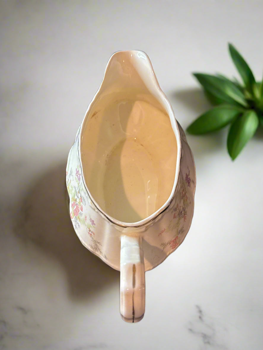 Crooksville China Co. Gravy Boat Vintage Floral Pattern With Gold Trim 8" Long