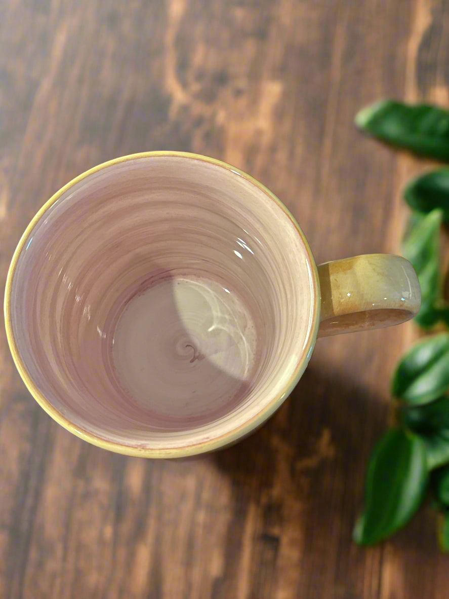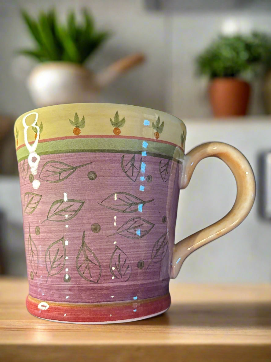Culinary Arts Julie Ingleman Jumbo Porcelain Leaf Coffee Mug Cup 16oz New. Excellent condition, new never used. Purple swirl inside.