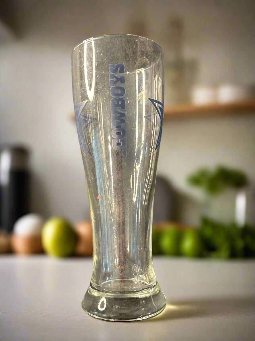Dallas Cowboys 8 1/8" Tall 12oz Pilsner Beer Glass NFL Texas Football. Excellent condition, no chips or cracks.
