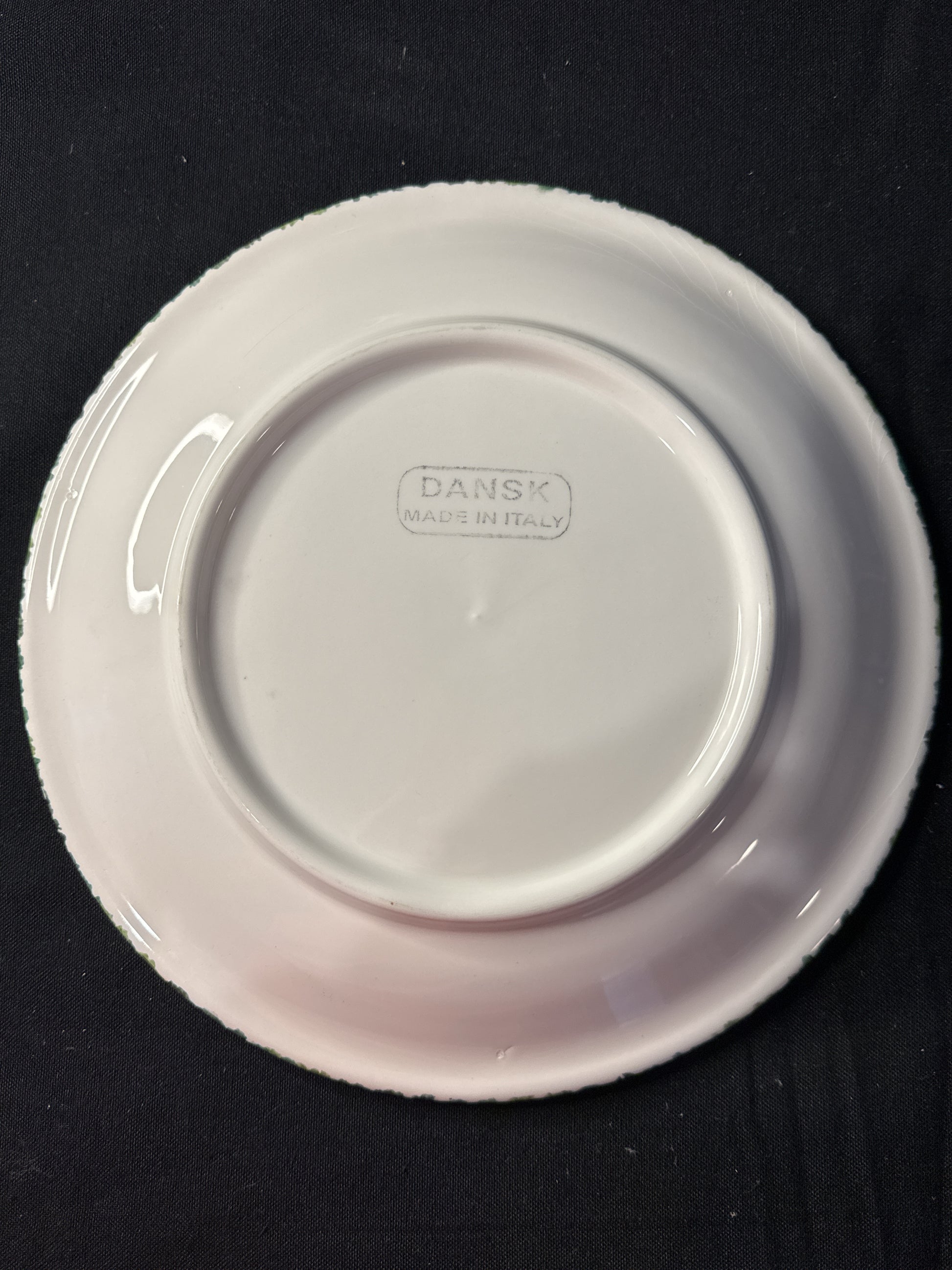 Dansk Fall Harvest Dinner Plate 10.5" Wide Fruit Yellow. Good Used condition, normal wear and some crazing. Minor chips on outside rim, but not noticeable with design. Currently have 4 in stock.