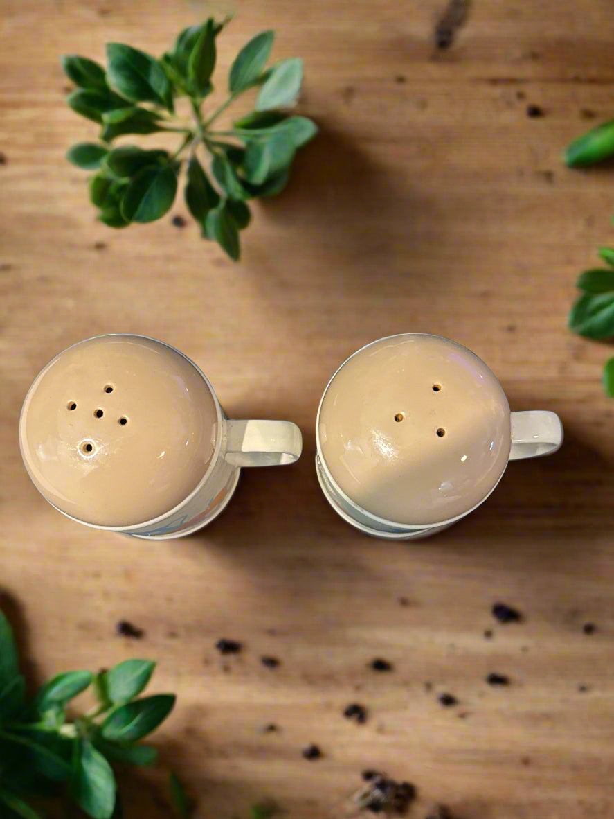 Decorative Fancy Kitchen Salt & Pepper Shakers Mary Wilkins Kelly Stamp on Bottom. 4.5" Tall. Excellent condition, no chips or cracks.