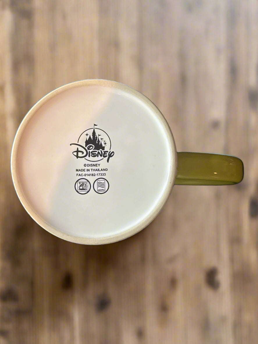 Disney Parks Coffee Cup Mug Big Thunder Space Mountain Jungle Cruise Mickey 3 5/8" Tall. Excellent condition, green inside. No chips or cracks.