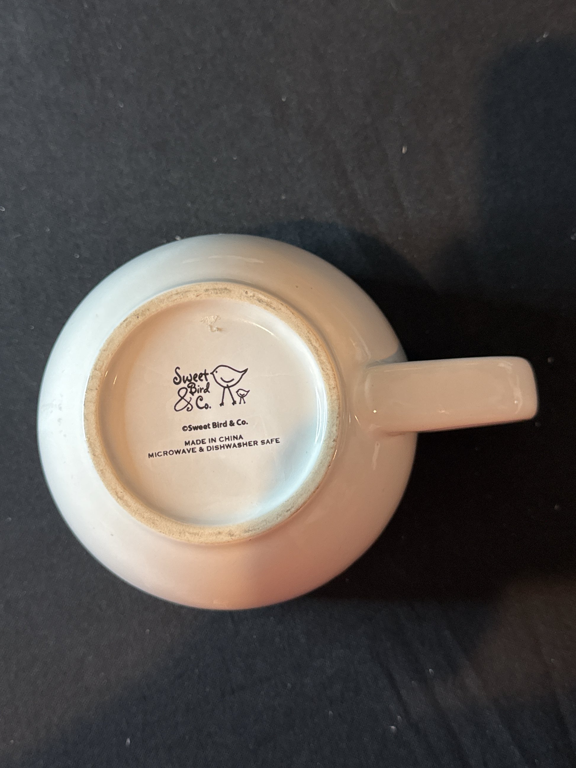 Extra Large 24oz Coffee Mug Cup And So The Adventure Begins Sweet Bird & Co. 3.75" Tall, 5" Wide. Excellent condition, no chips or cracks. D19