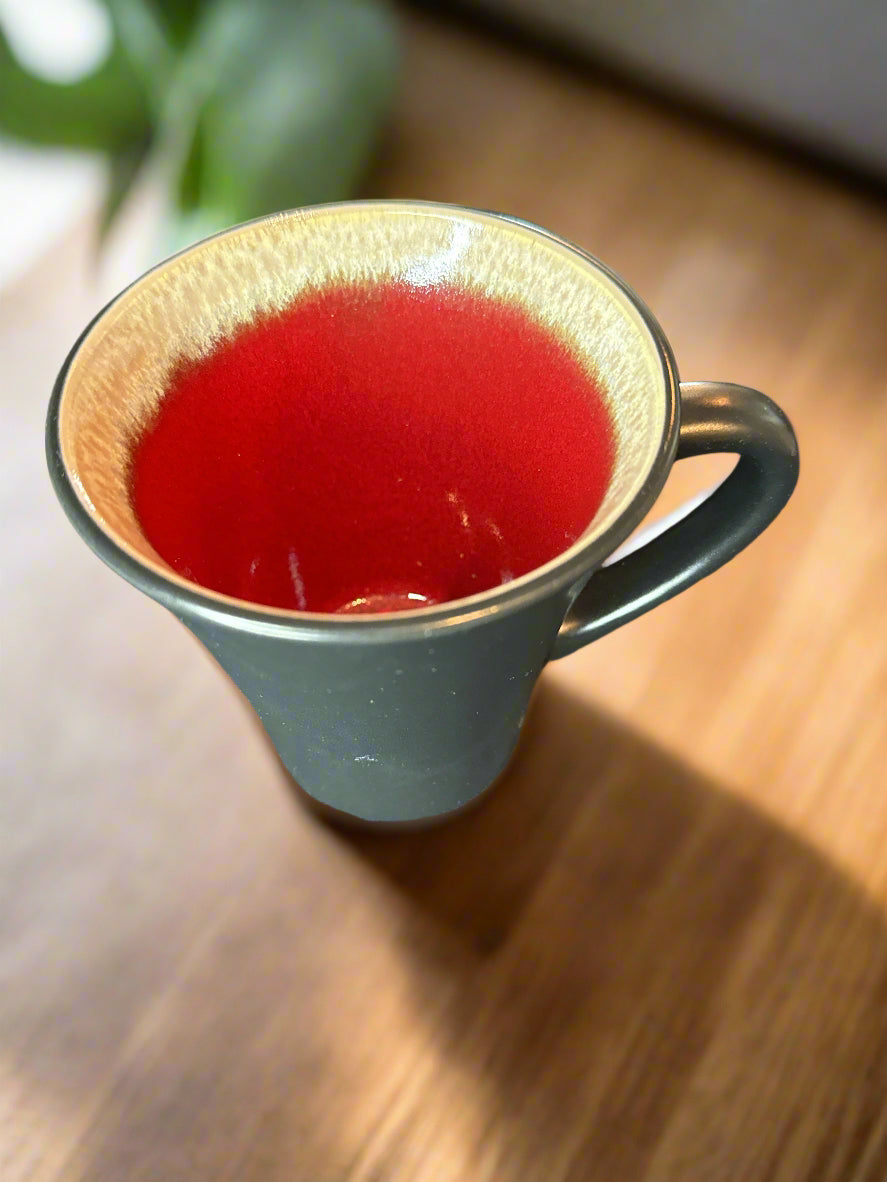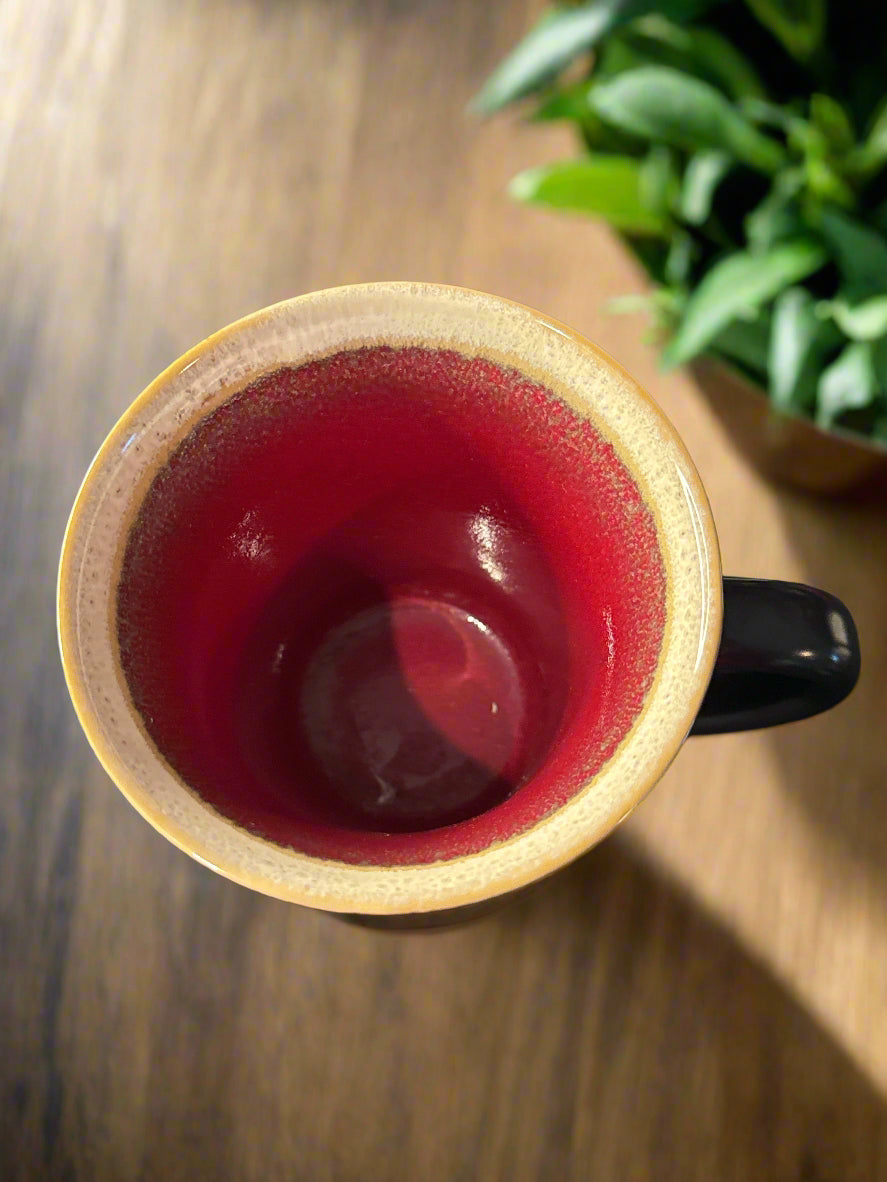Festive Carousel Coffee Mug Cup by Gibson Elite Black and Red with White Rim. Excellent condition, no chips or cracks. Currently have 6 in stock.