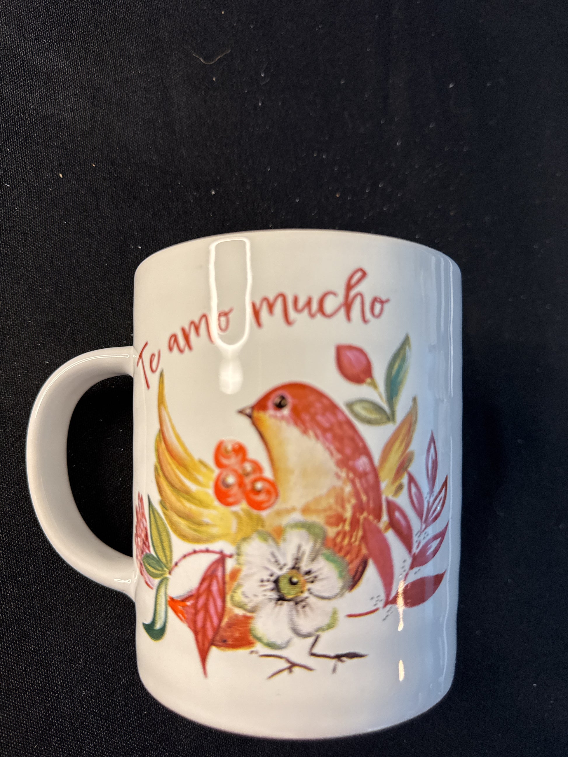 Fig & Fern "Te Amo Mucho" Coffee Cup Mug Bird Pink Interior 4.5" Tall New