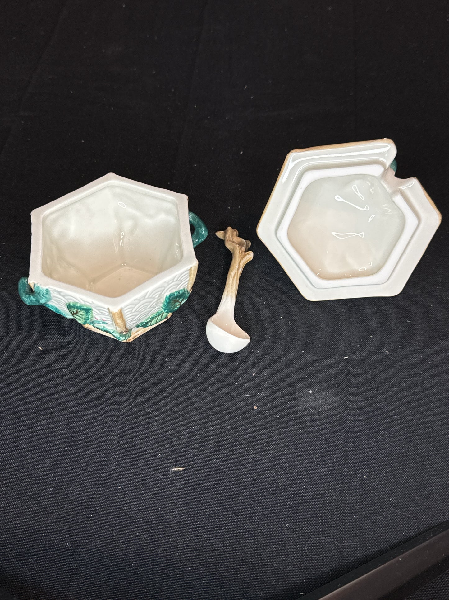 Fitz Floyd Classics Sugar Bowl White Pink Flower Vines Twig Spoon