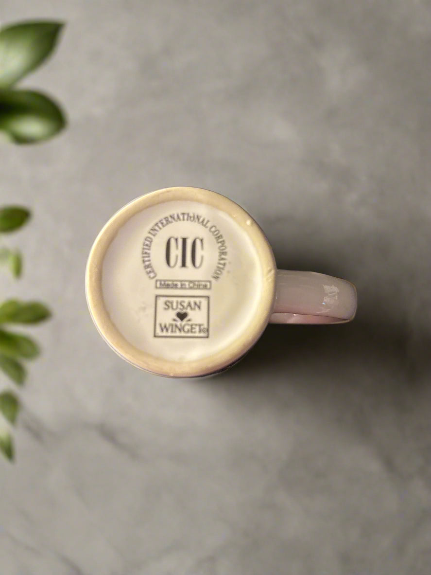 Folk Angel by Certified International Corp. Latte Coffee Mug Cup Angels & Stars on Blue 6" Tall. Excellent used condition, no chips or cracks.
