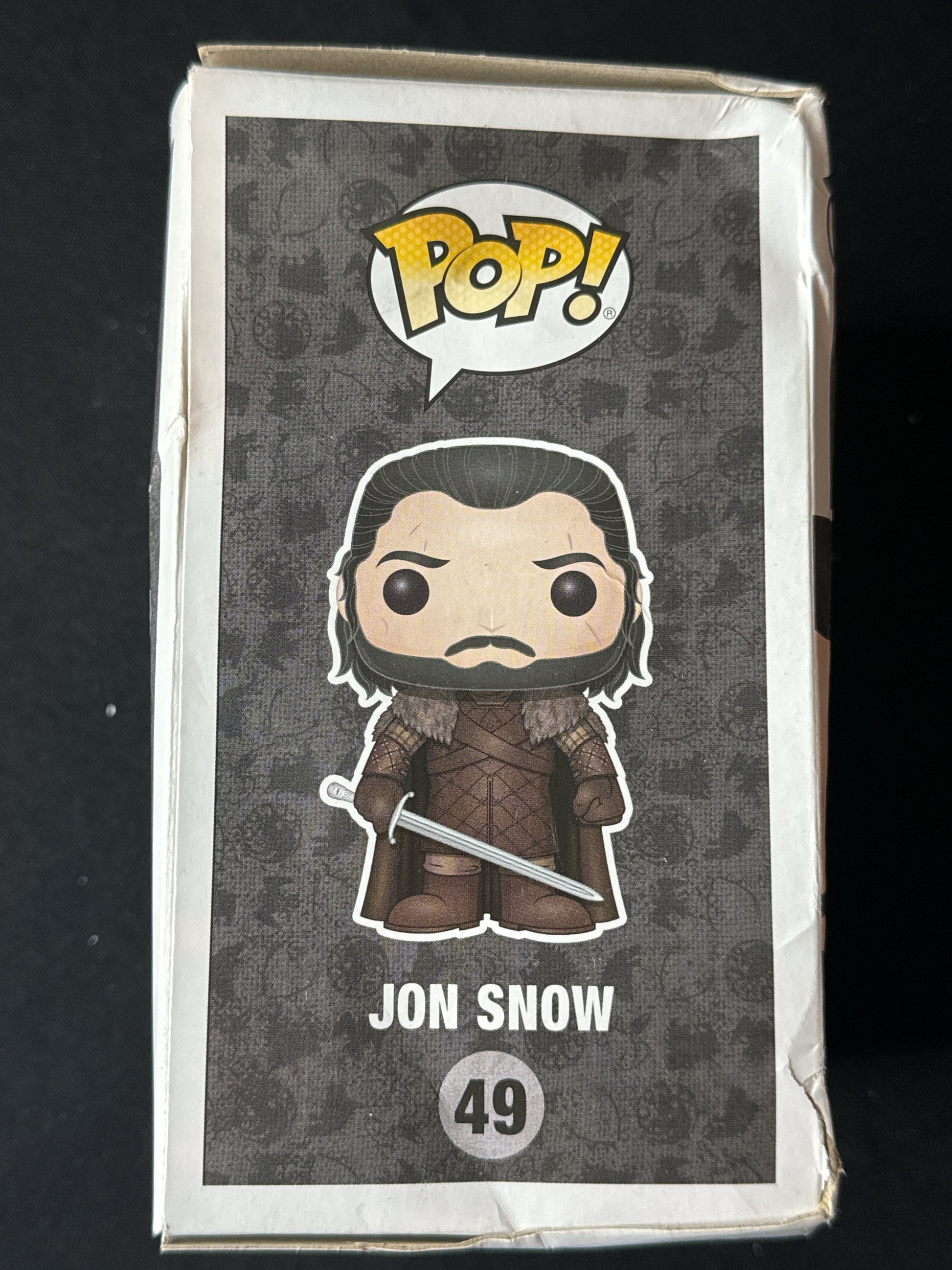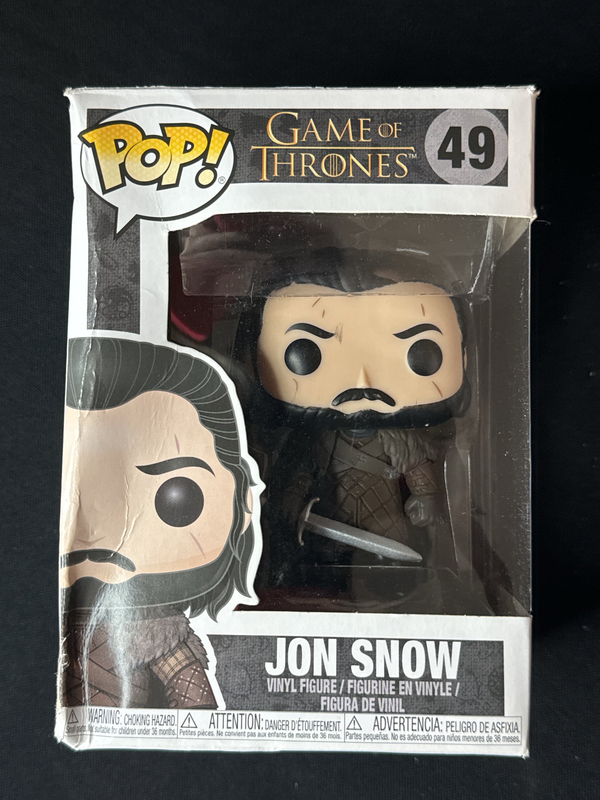 Funko Pop! Game of Thrones Jon Snow Vinyl Figure #49 New in Box. Box has some creases due to storage and handling. No tears or cracks. Never opened.