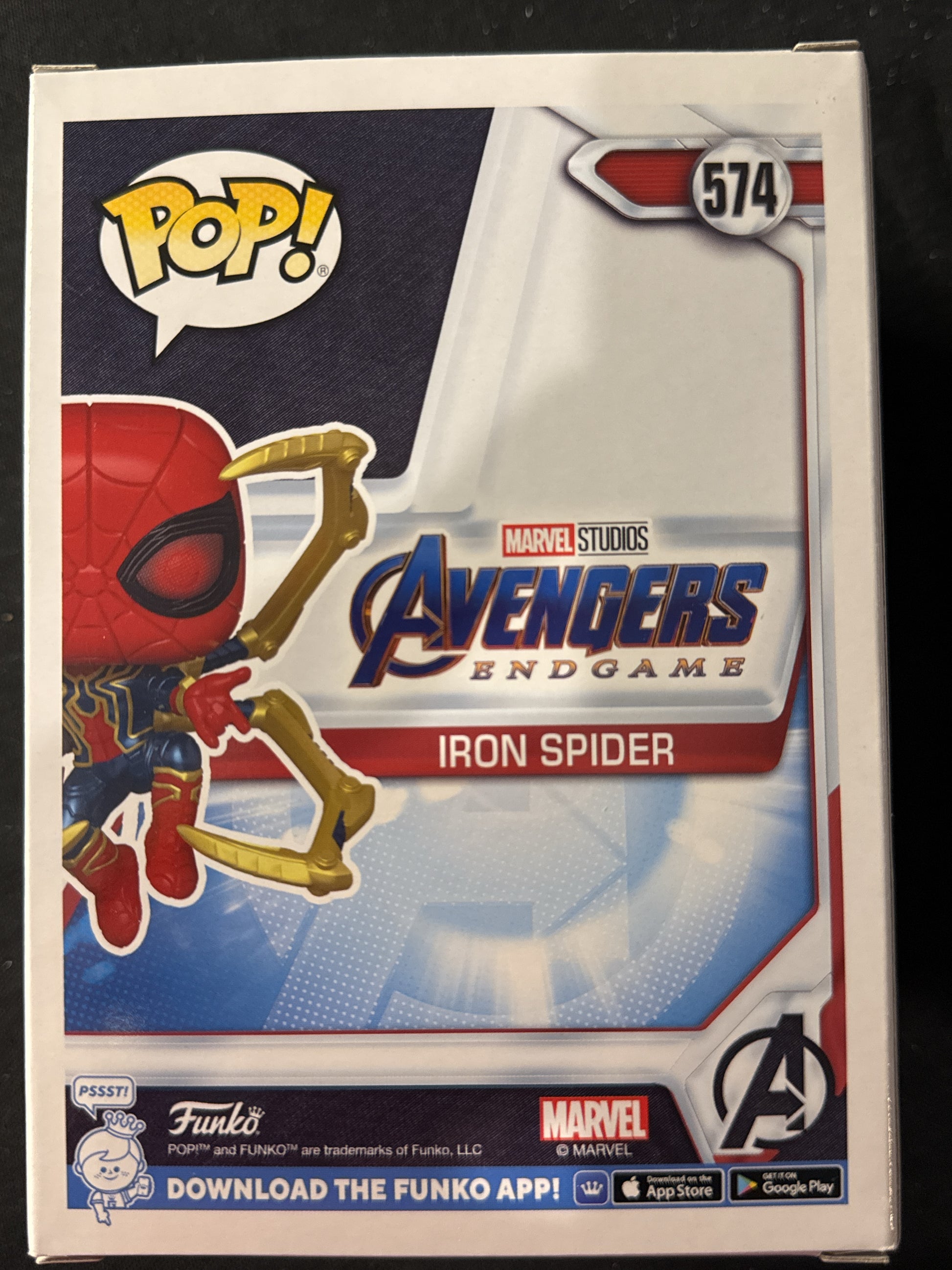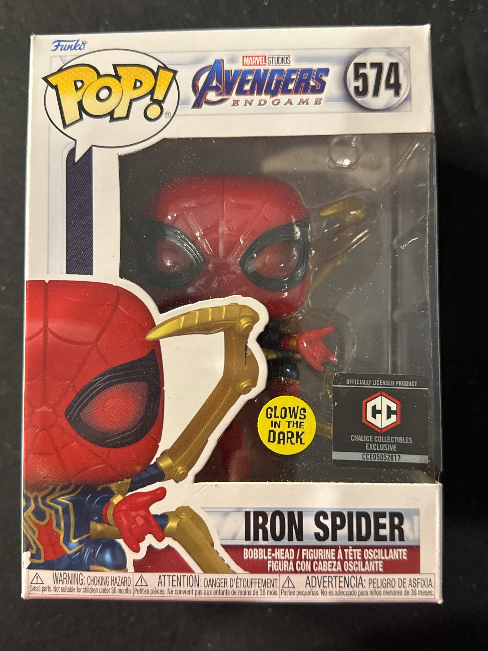 Funko Pop! Marvel Avengers Endgame Iron Spider Glows in Dark New in Box #574. Chalice Collectibles Exclusive. Never opened.