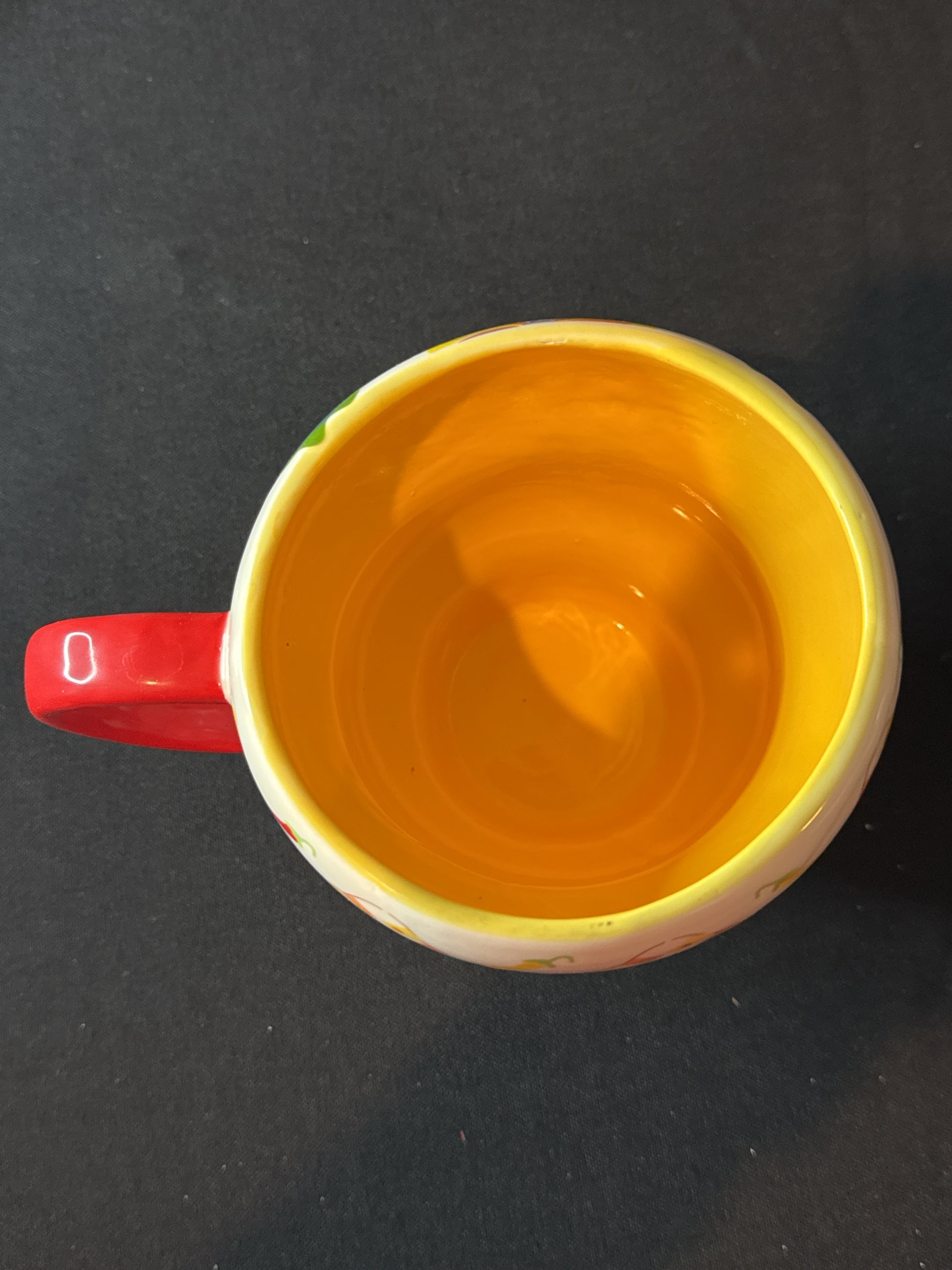 Gibson Home Day Of The Dead Skull Coffee Cup Mug 25oz Multi-Colored W/ Yellow Interior. 5.25" Tall, excellent condition, hand painted, no chips or cracks. Currently have 2 in stock. E1