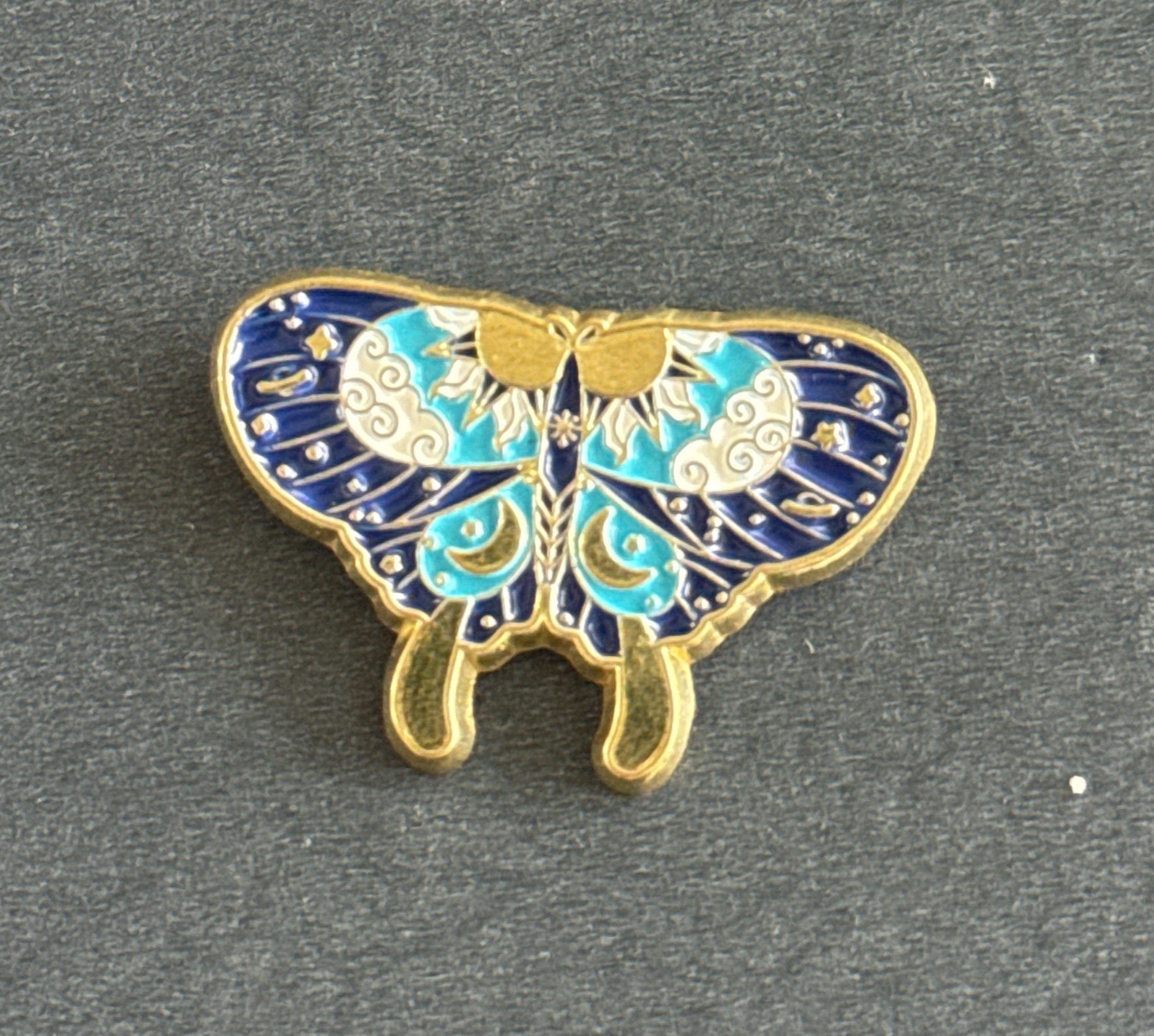 Gold Tone Costume Enamel Butterfly Moth Brooch Pin Purple Blue