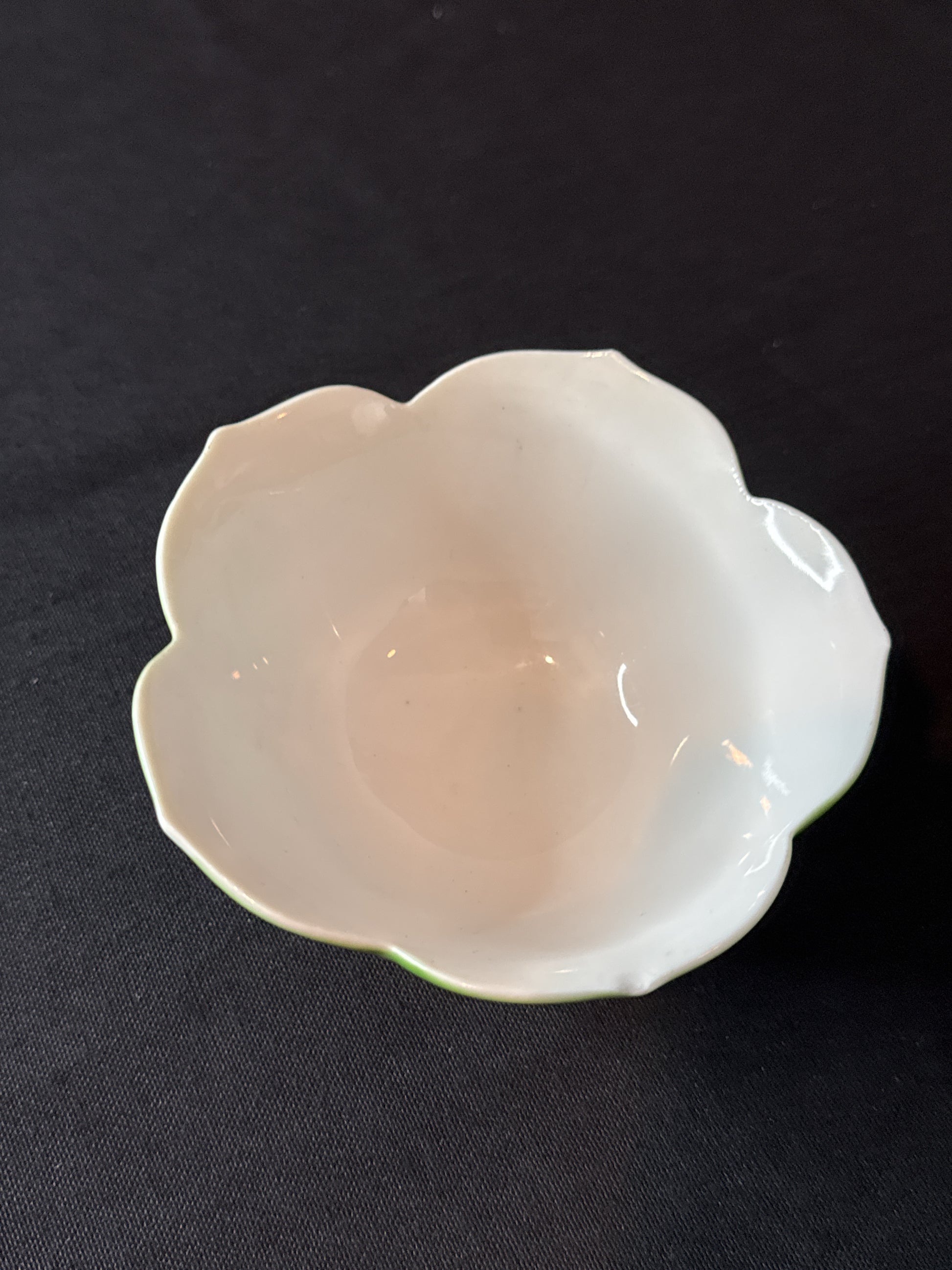 Green Rice Bowl MCM Lotus Shaped Ceramic Made in Japan. Excellent condition, no chips or cracks. Measures 2.25" Tall and 4.5" wide at top.