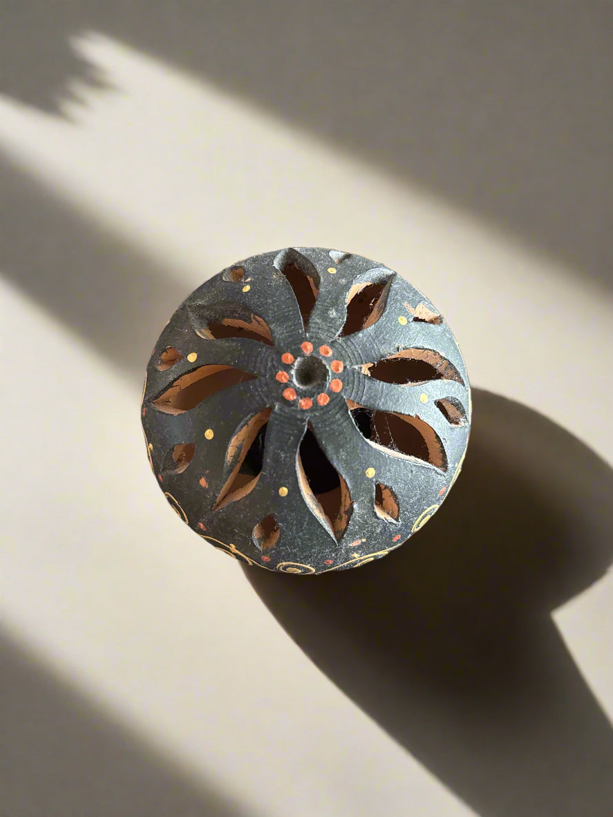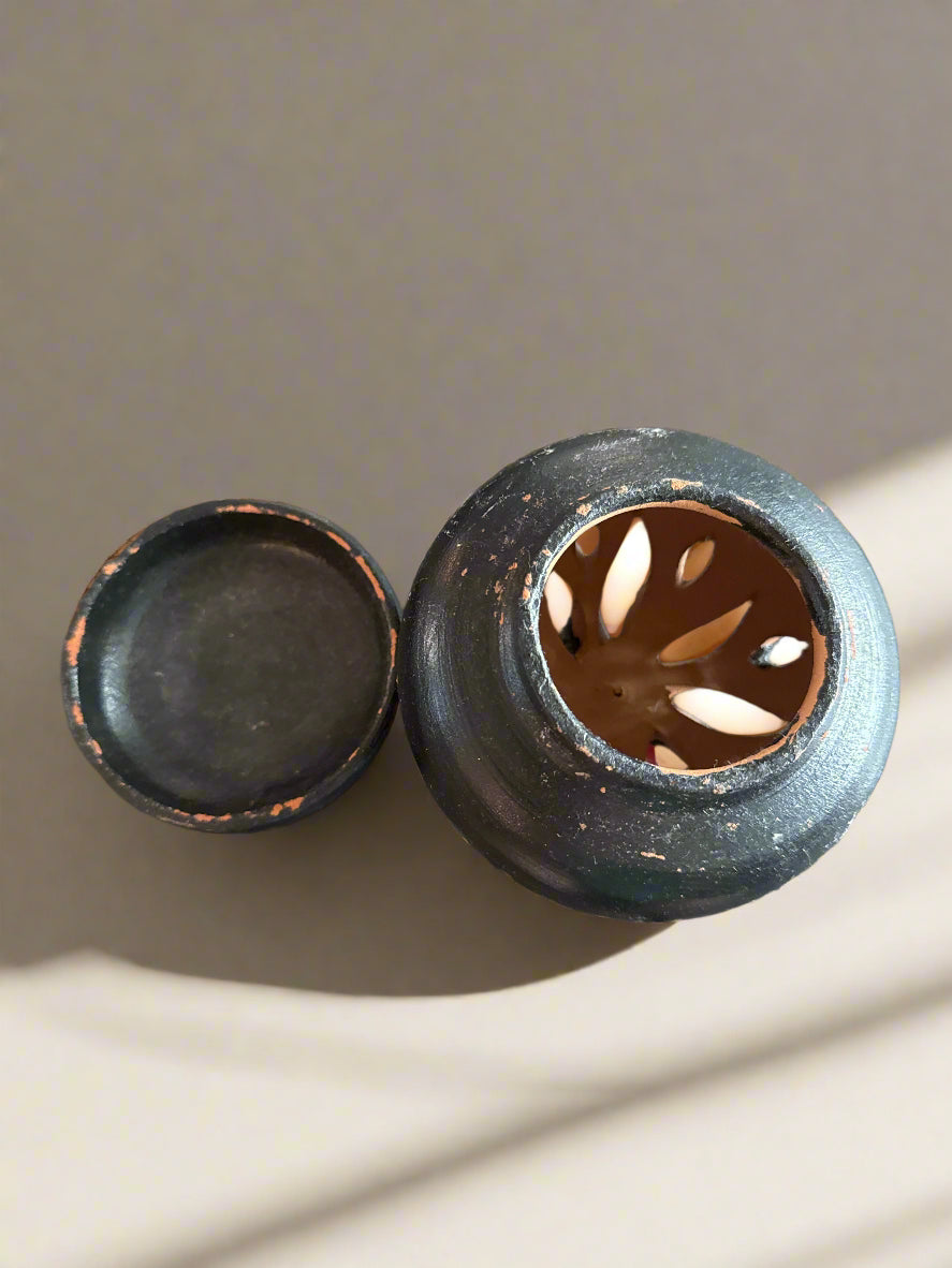 Hand Painted Ceramic Tea Light Candle Holder Black w/ Gold Accents