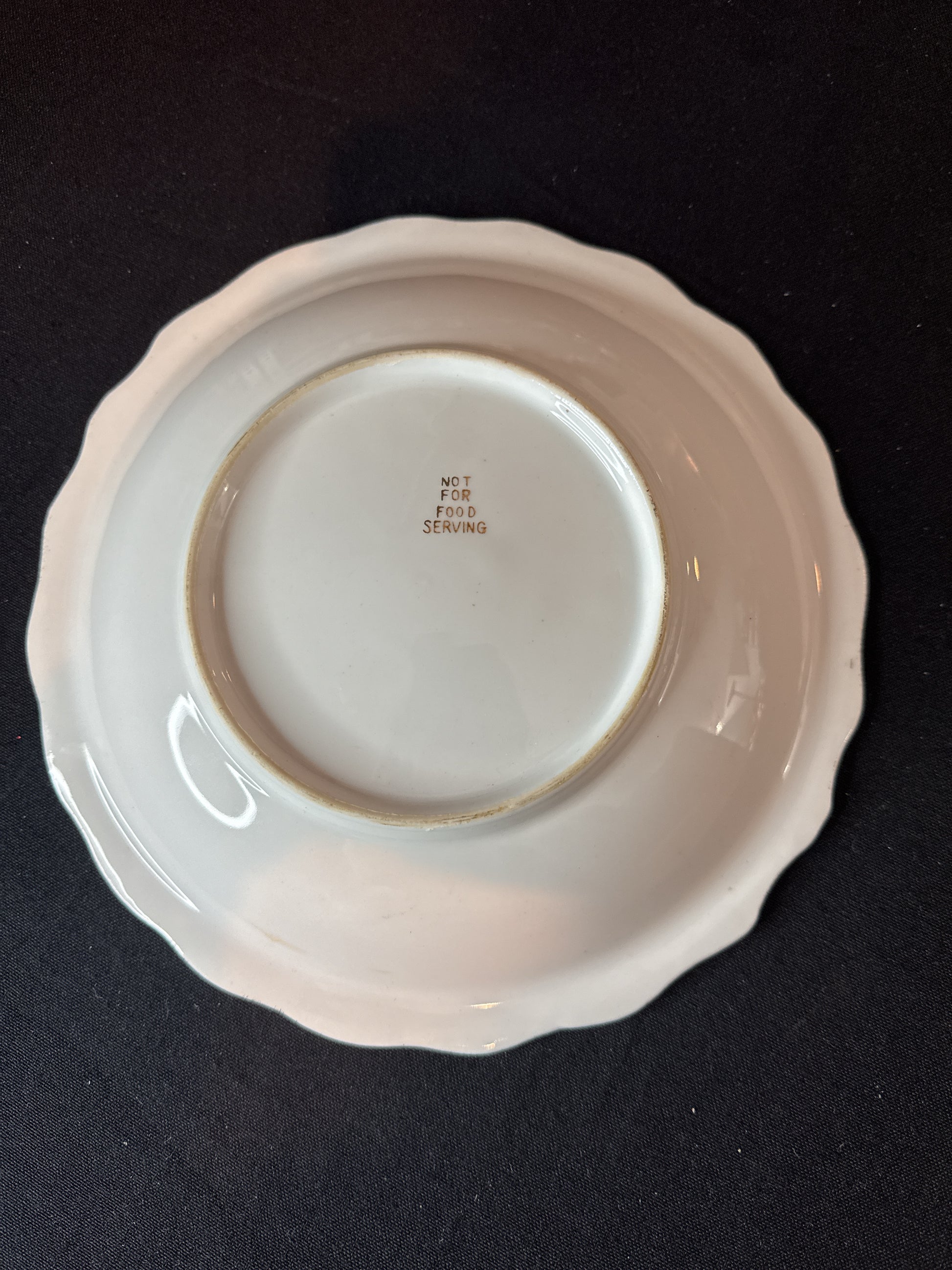 Hand Painted Still Life Fruit Bowl 9.25" Wide x 1.5" Tall Display Piece. Labeled on back "Not for food service". Beautiful piece, no chips or cracks. Normal wear from age. No other markings.