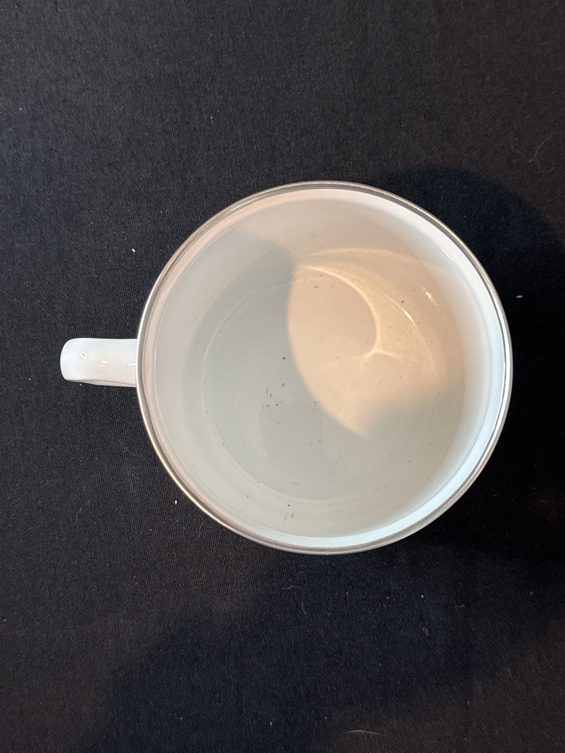 Harry Potter Hogwarts Crest Camper Tin 21oz Coffee Mug Cup White Speckled New 4" Tall. Excellent condition, no chips or cracks. D13