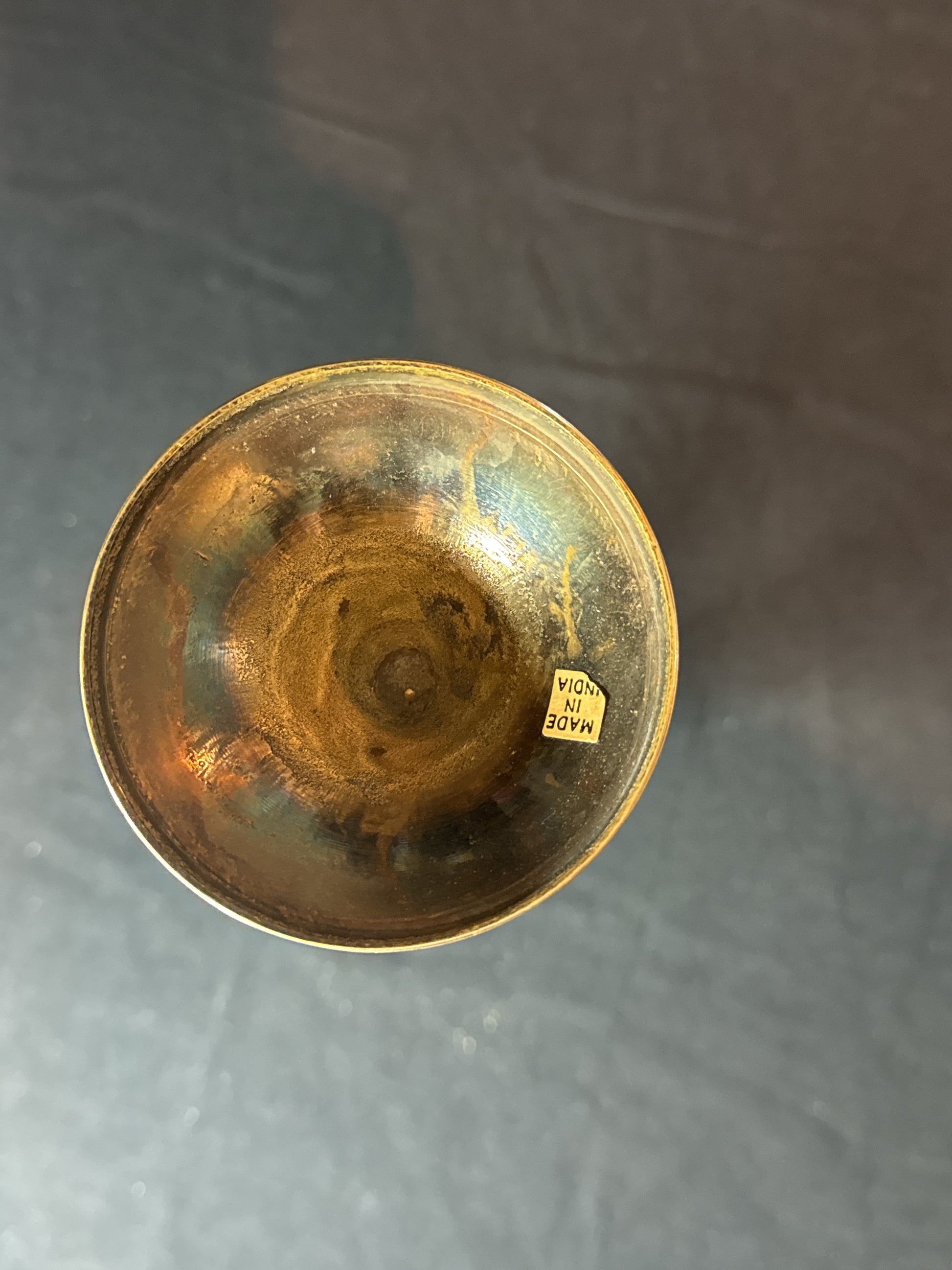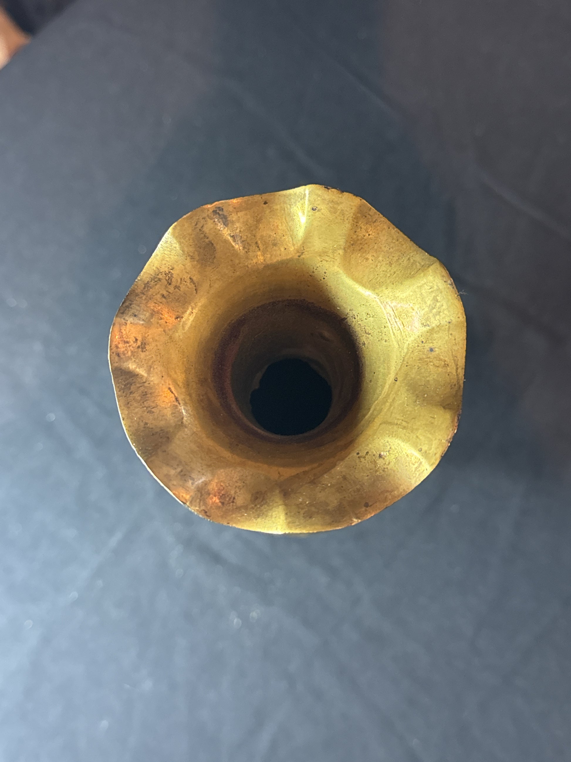 Jainson Etched Brass Vase India Metal Floral Flower Ruffled Edge Vintage 12" Tall. Good used condition with signs of wear. No dents or damage.