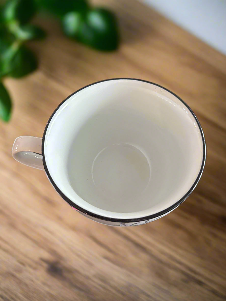 Kafuh Coffee Tea Mug Cup Black & White, Touch of Red Very Pretty New