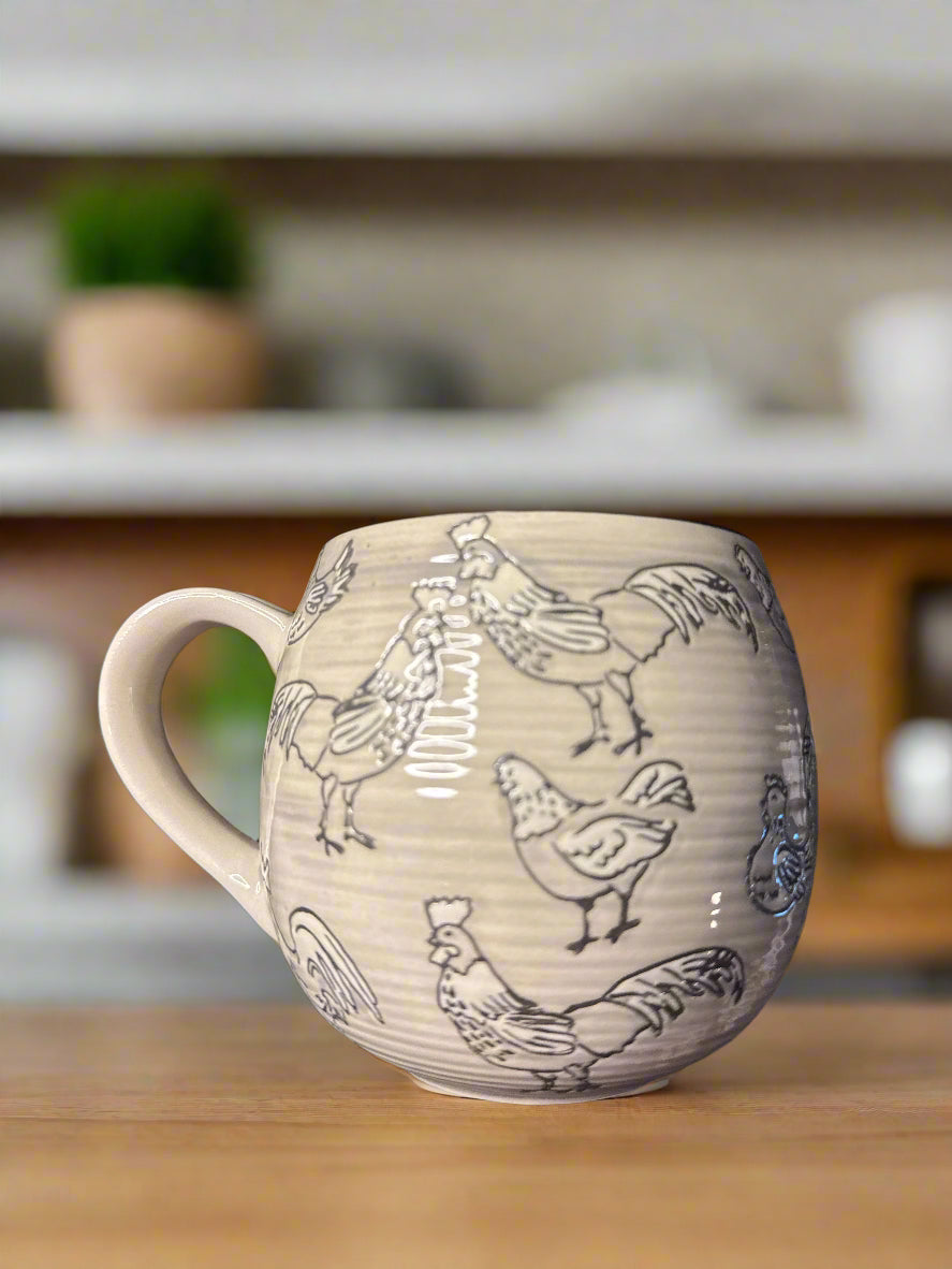 Karma Rooster Rise & Shine Coffee Cup Mug Black White Gray Ceramic 16oz New