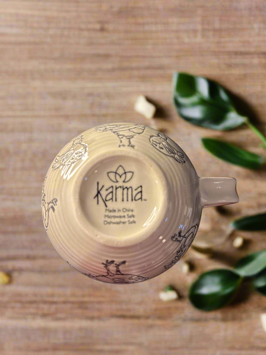 Karma Rooster Rise & Shine Coffee Cup Mug Black White Gray Ceramic 16oz New. Excellent condition, no chips or cracks.