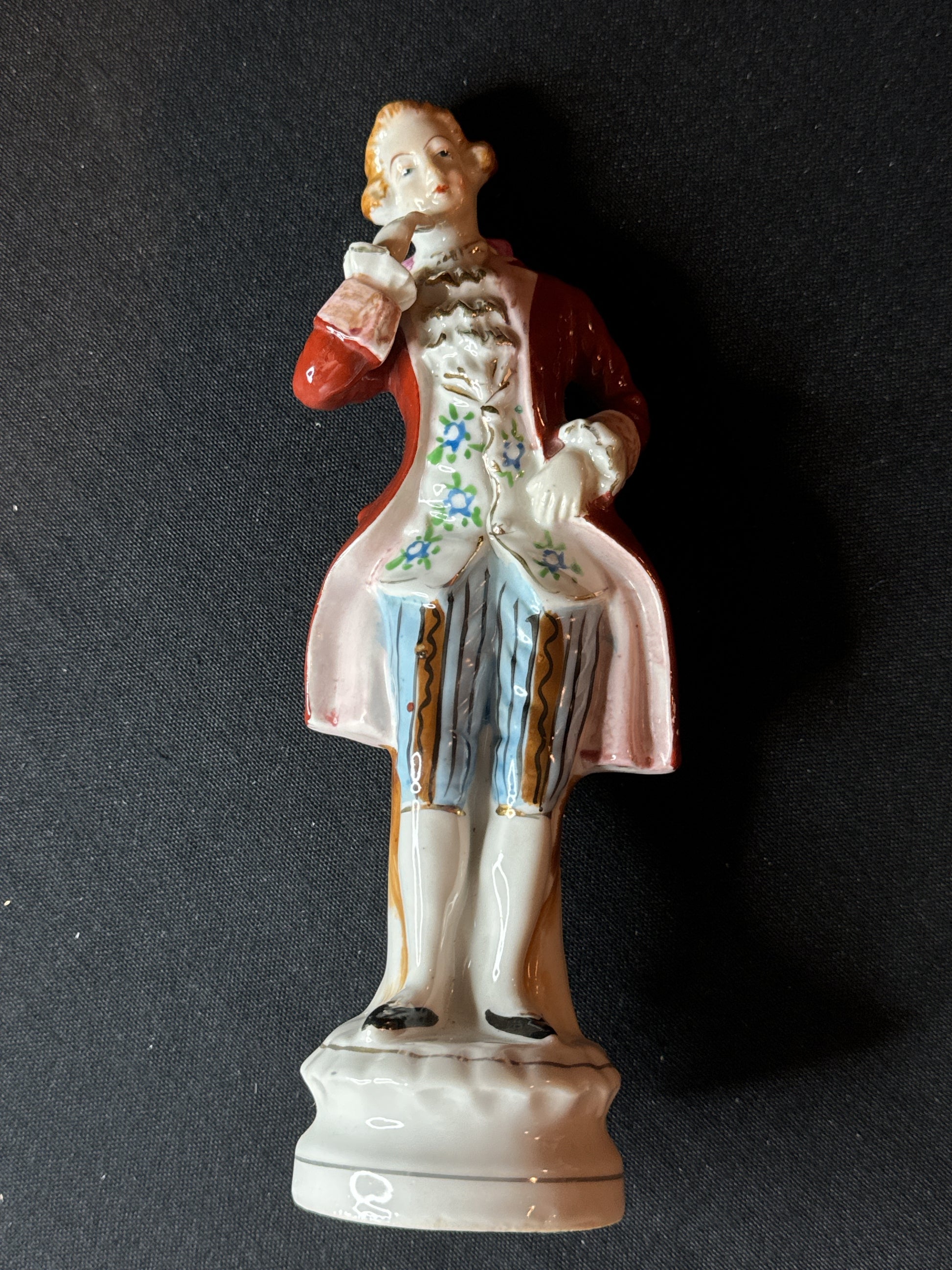 L&M Lipper and Mann Vintage Colonial Man Thomas Jefferson Figurine 9" Tall. Small scratch in jacket on bottom right from front. Does not detract from the beauty or color of the piece. No cracks.