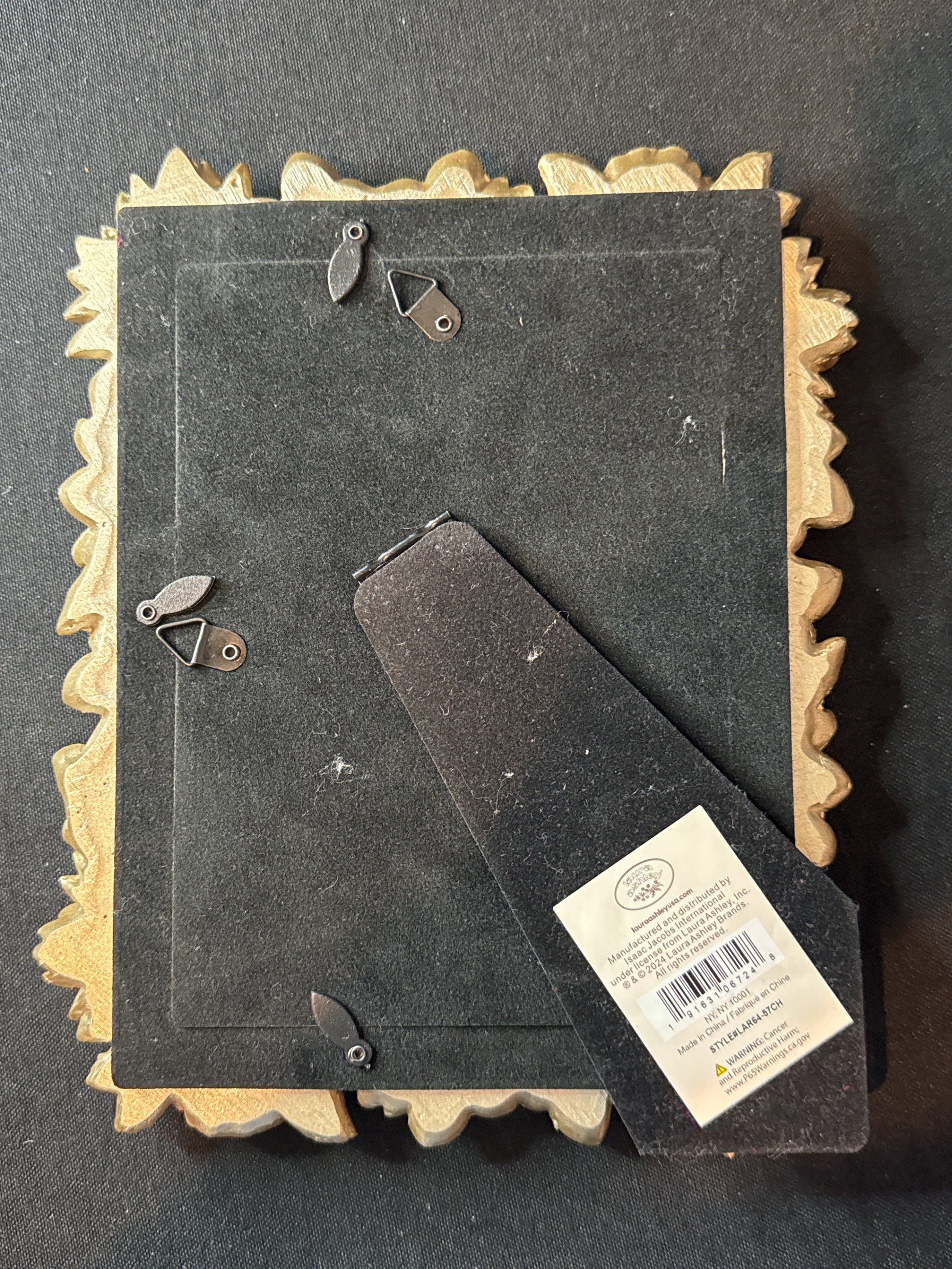 Laura Ashley 5 x 7 Metal Picture Frame Floral Silver Hanging or Desk Mount New. Actual size of frame 9.25" x 7.5" Excellent condition, no chips or cracks.