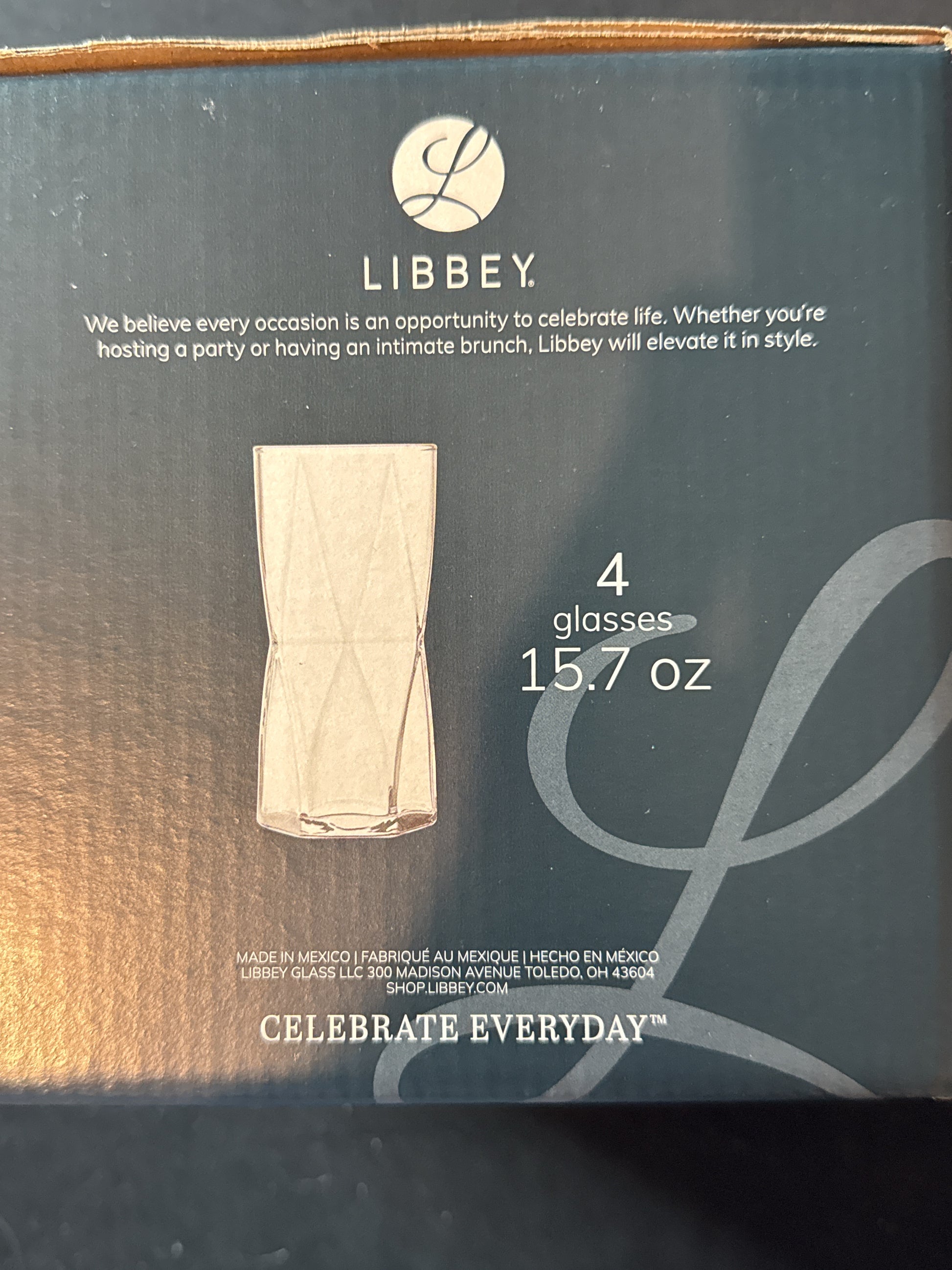 Libbey Rhombus 4-Pc Cooler Glass Set New In Box 15.7 ounce 6" Tall. Excellent condition, no chips or cracks. Currently 2 sets in stock.