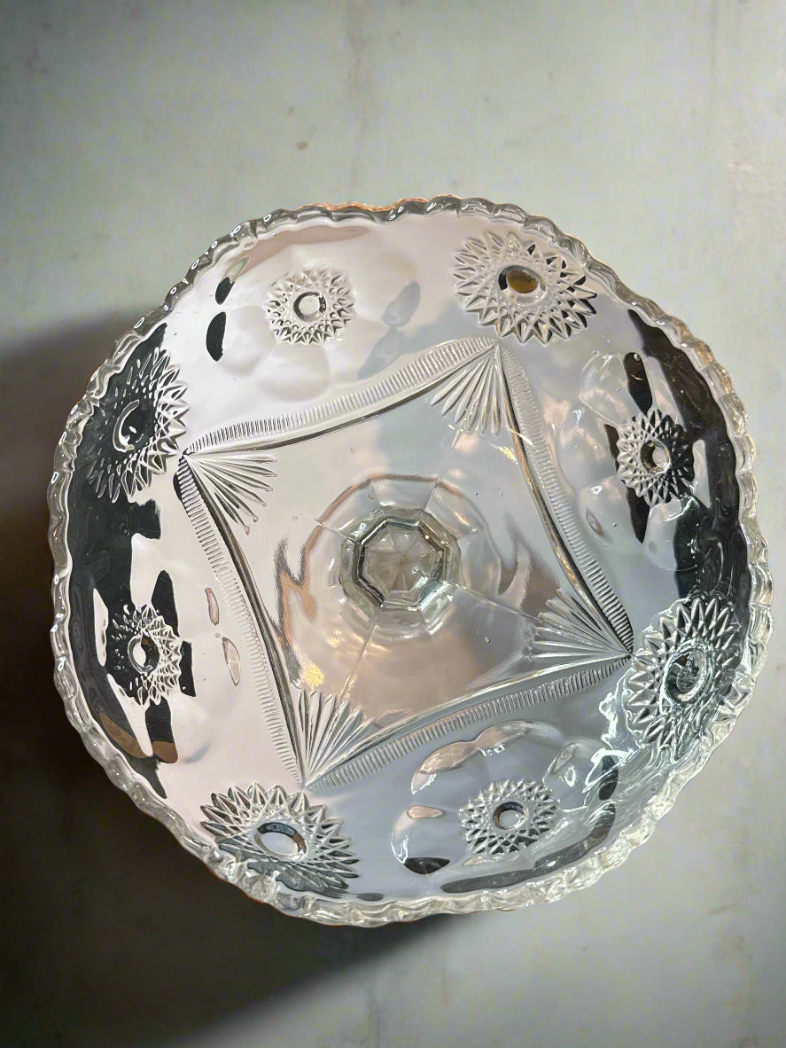 McKee Glass Co. Clear Pressed Glass Footed Compote SEXTEC Vintage C. 1894 7.5" Tall