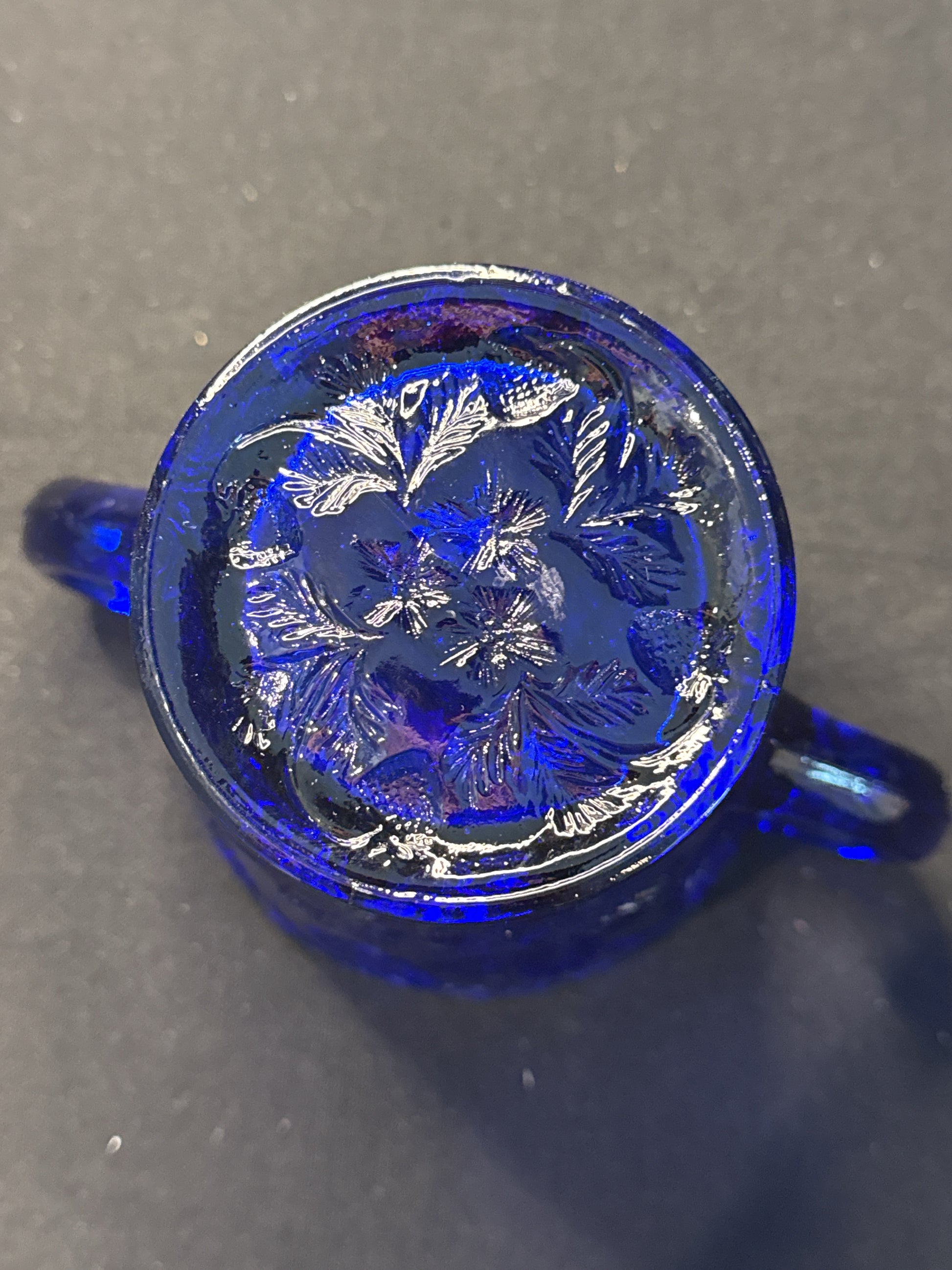 Mosser Inverted Strawberry Cobalt Blue Double Handles Vase 5" Tall. Excellent condition. no chips or cracks.