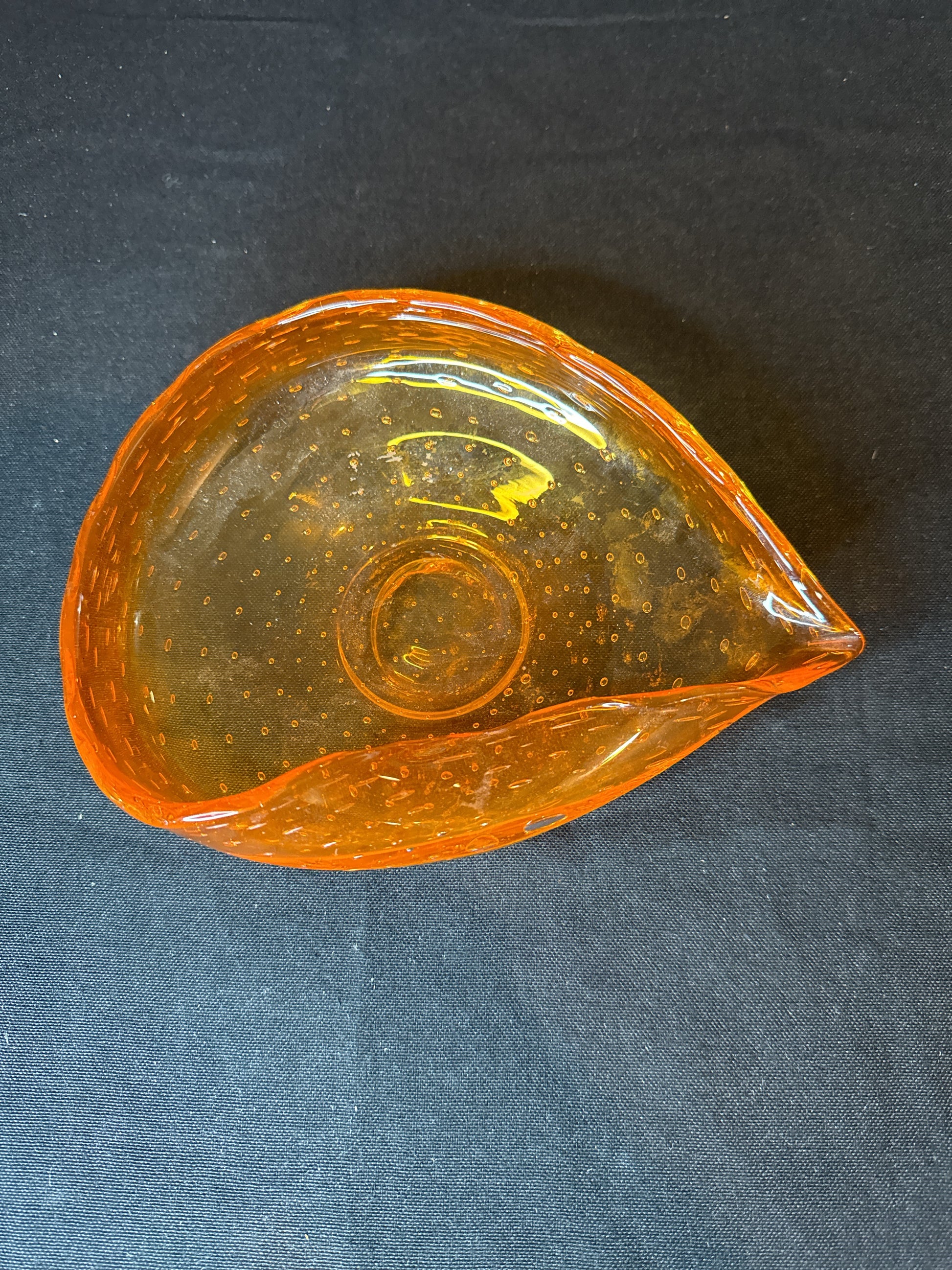 Murano Bubble Orange Blown Glass Bowl/Ashtray 7.5" X 6"