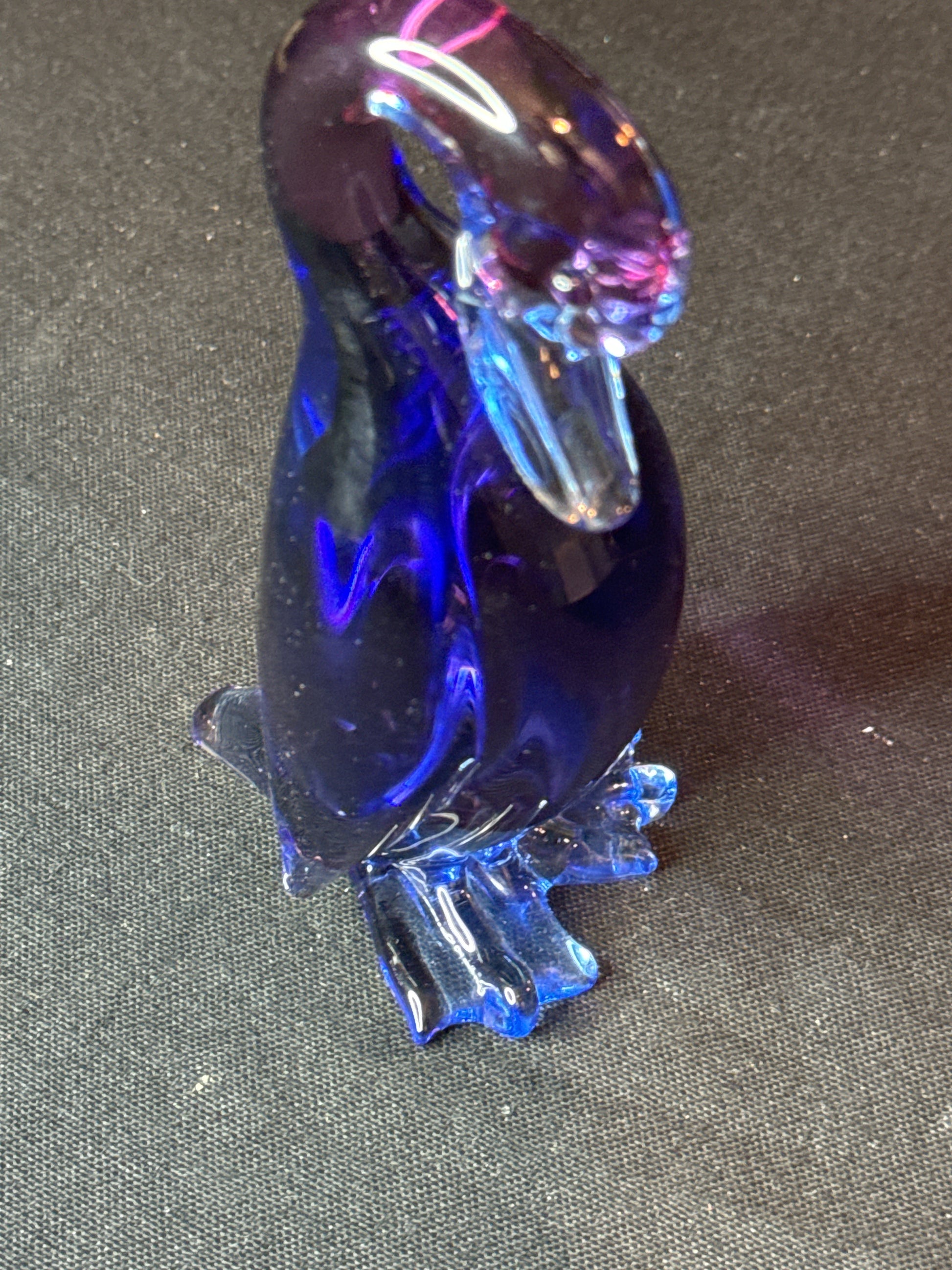 Murano Hand Blown Glass Blue & Purple Duck Figurine 6" Tall. Excellent condition, no chips or cracks.