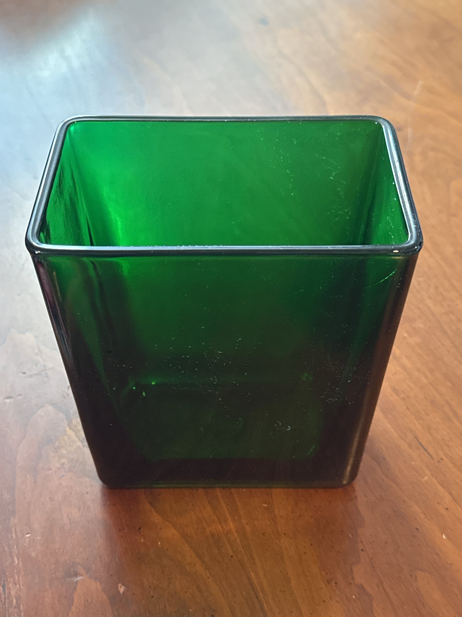 Napco 1166 Planter Emerald Green Glass Rectangular Vase Made in USA 6.25" x 5.5" x 3.5". Excellent condition, no chips or cracks.