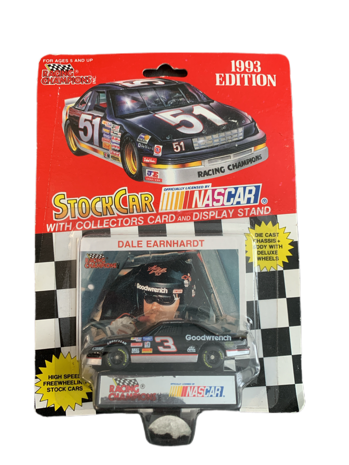 NASCAR Dale Earnhardt 1993 Racing Champions #3 Goodwrench Monte Carlo 1:64 Die-Cast Car In Box. Car and box are in excellent condition for age of 31 years old. Trading Card in mint condition.