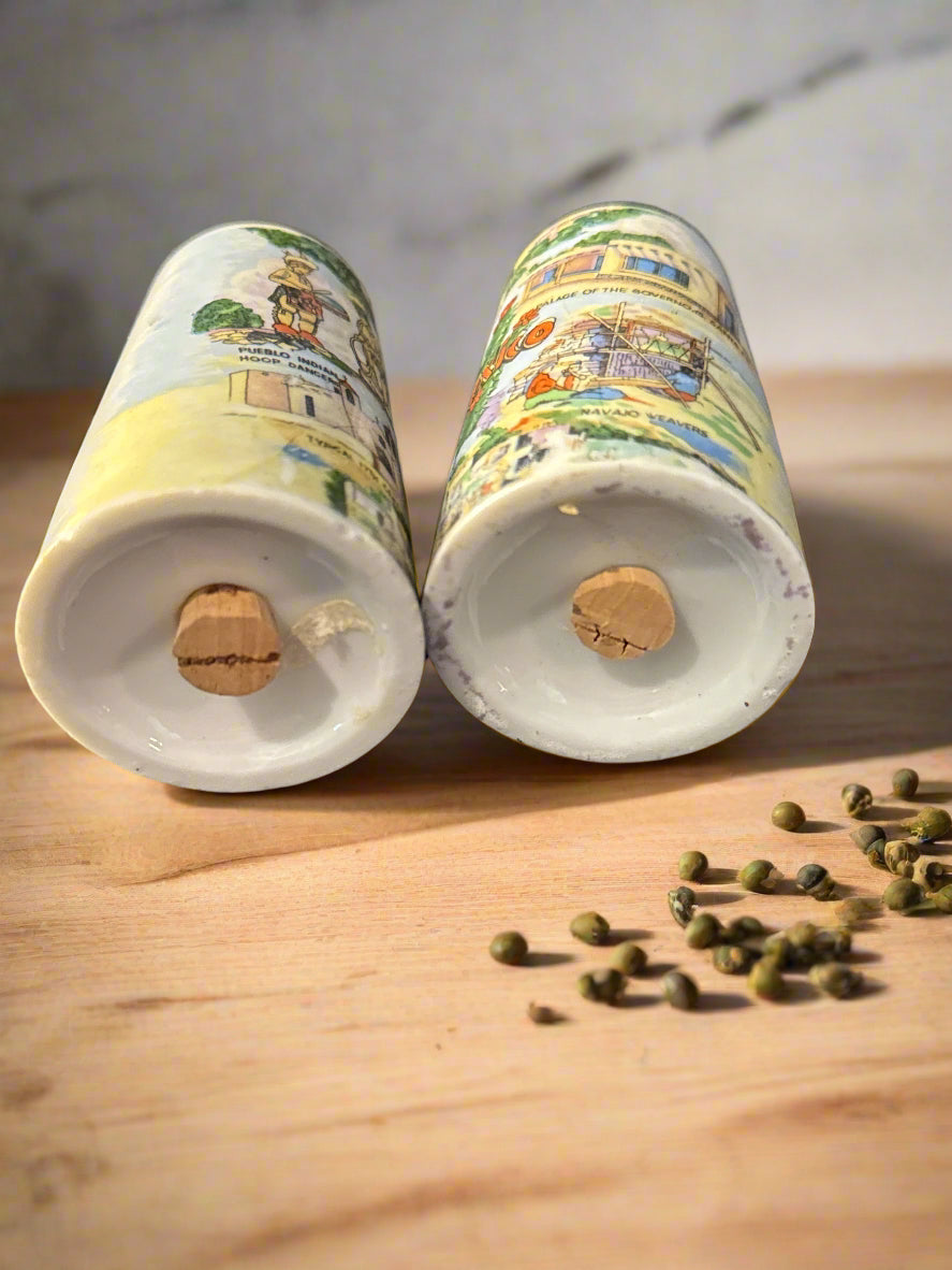 New Mexico Souvenir Salt & Pepper Shakers Porcelain Thrifco Japan Vintage 3" Tall