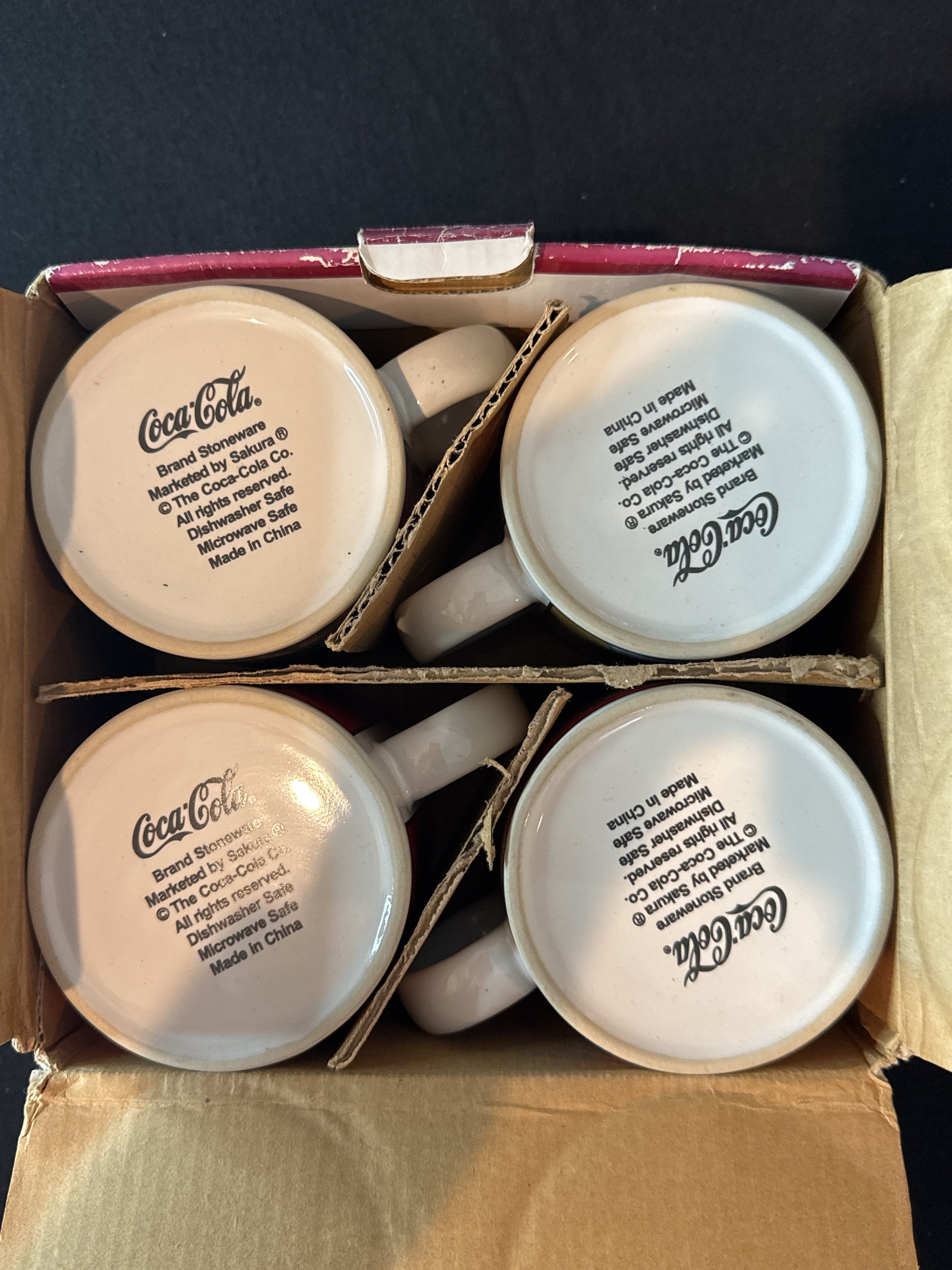 New Old Stock of Coca Cola Santa Coffee Mugs Set of 4 In Box 3.75" Tall