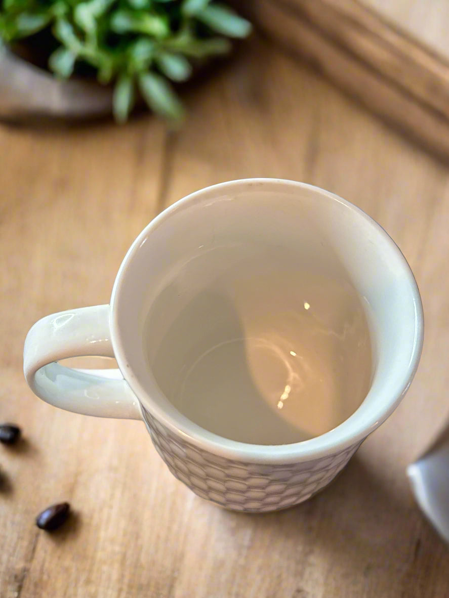 Oneidacraft Oneida White Wicker Basket Weave Coffee Mug Cup 4" Tall