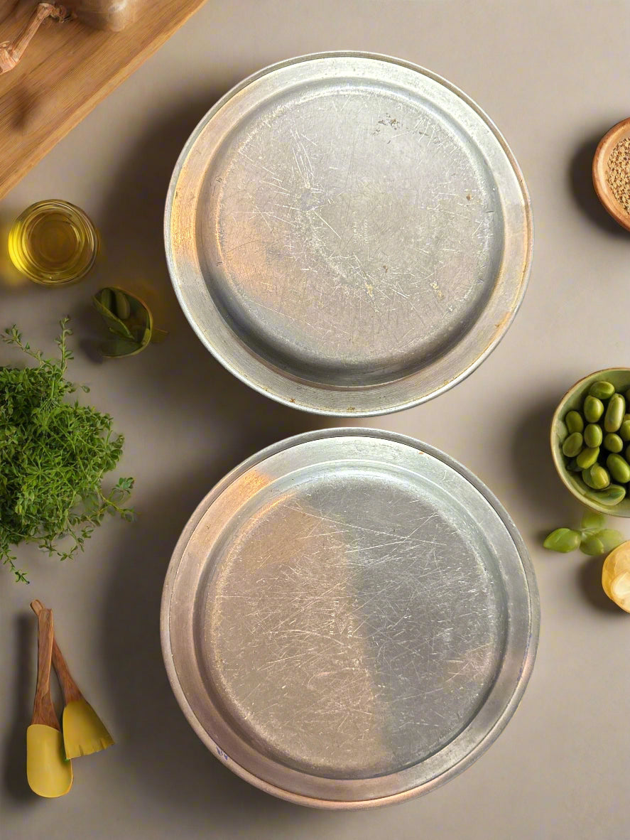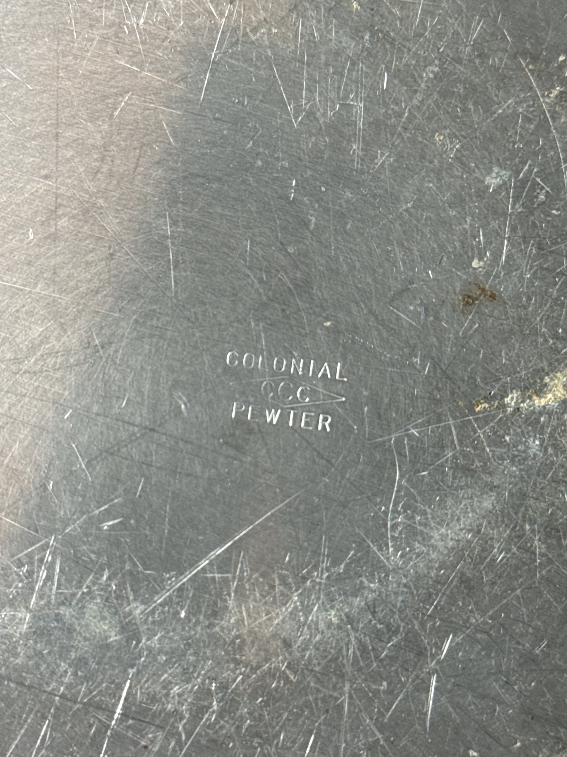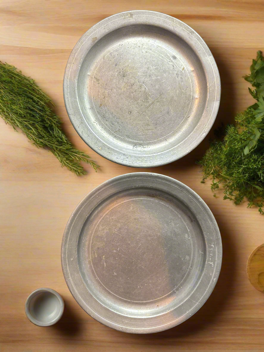 Pair of Colonial Pewter 8" Plates Vintage. In used condition, with some markings from age. No damage or chips.
