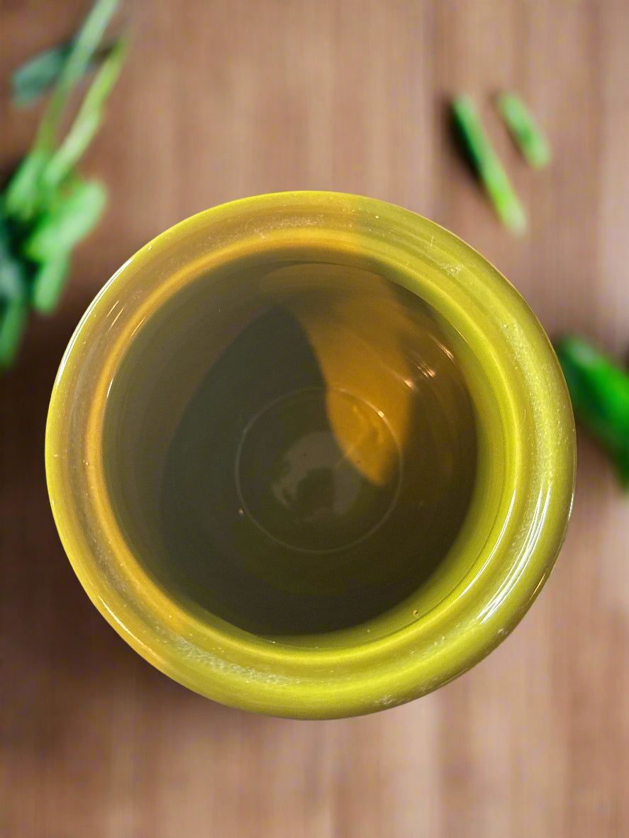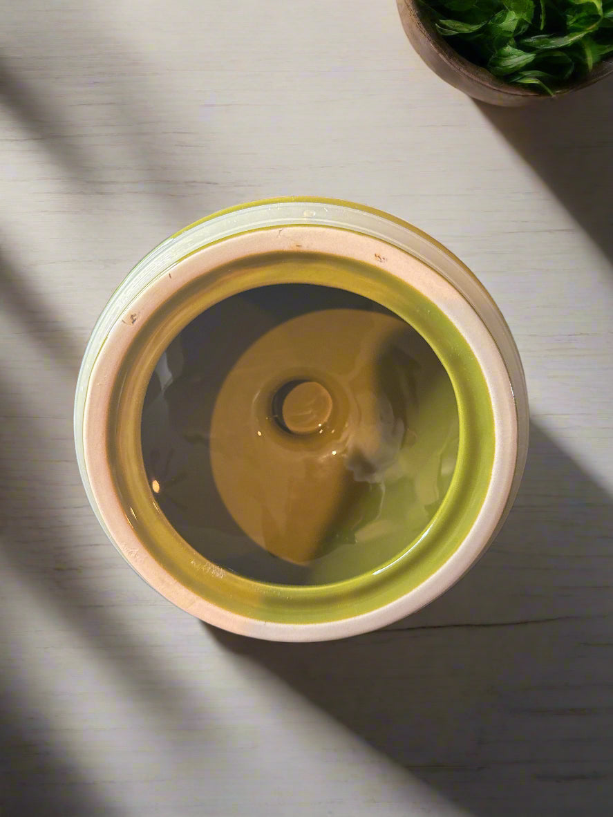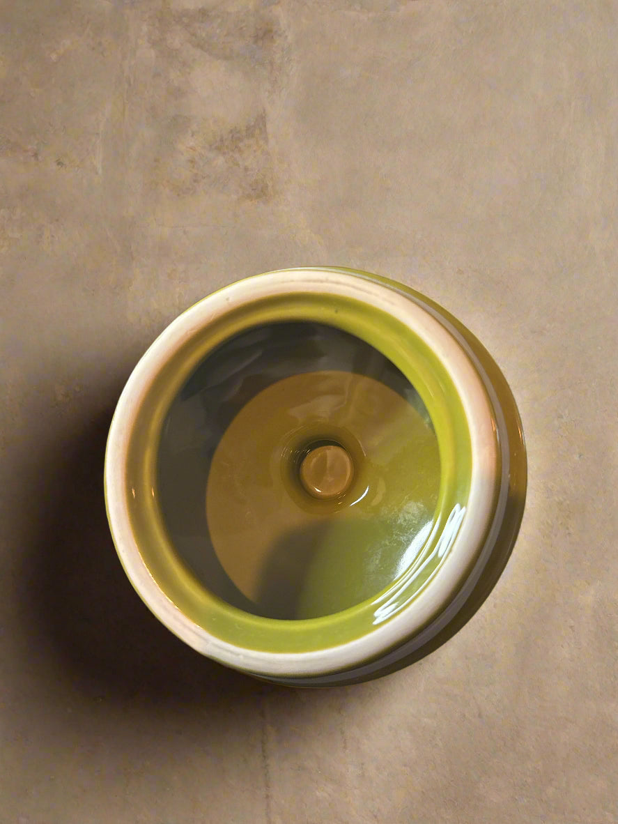 Pair of Nesting Green Ceramic Ribbed Canisters from OGGI 9" & 7" Tall