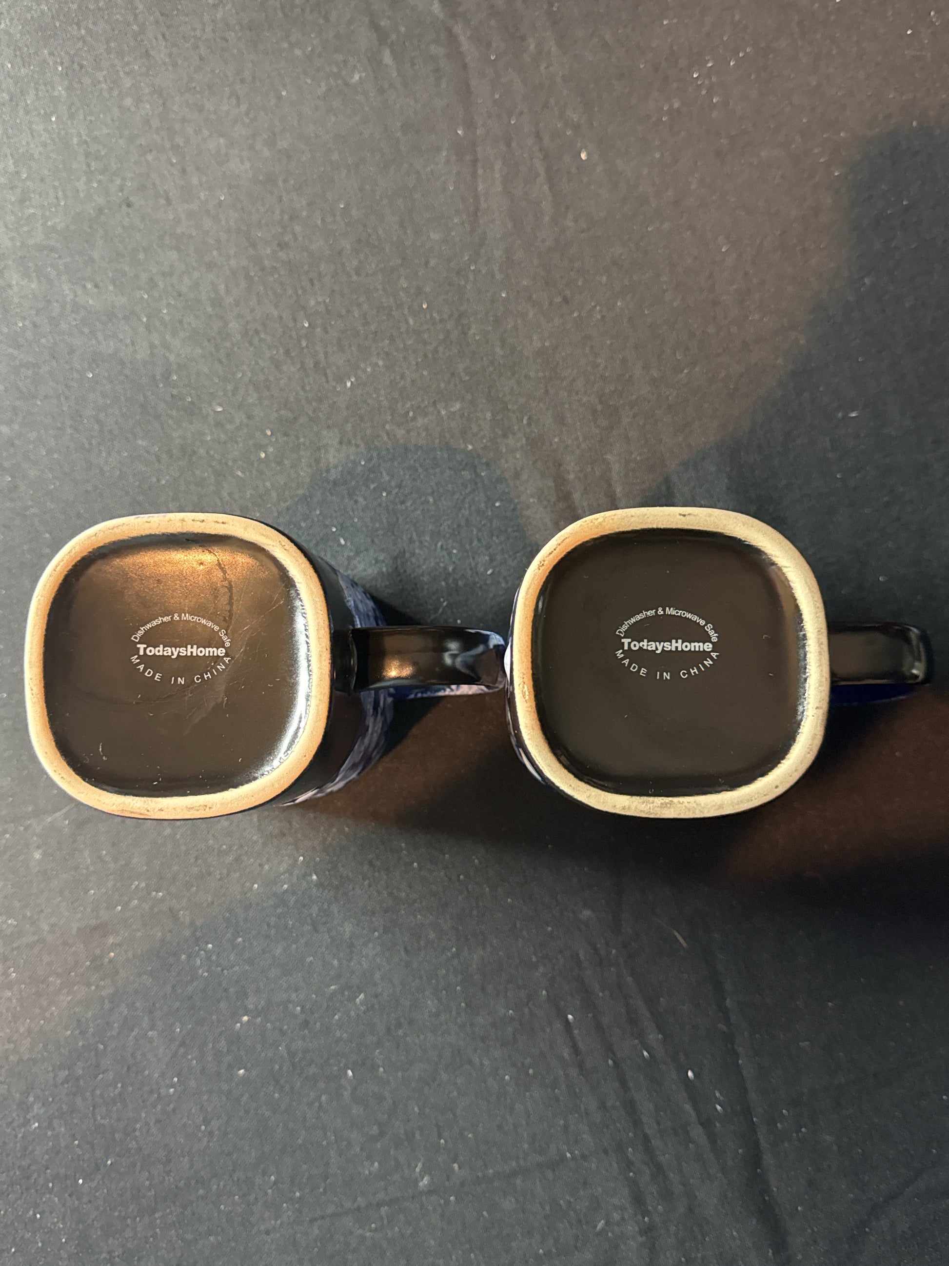 Pair of Todays Home Blue/White Drip Glaze Giant Coffee Cups Mugs 5" Tall Square. Each one is unique and as beautiful as the other. Both in excellent condition, no chips or cracks.