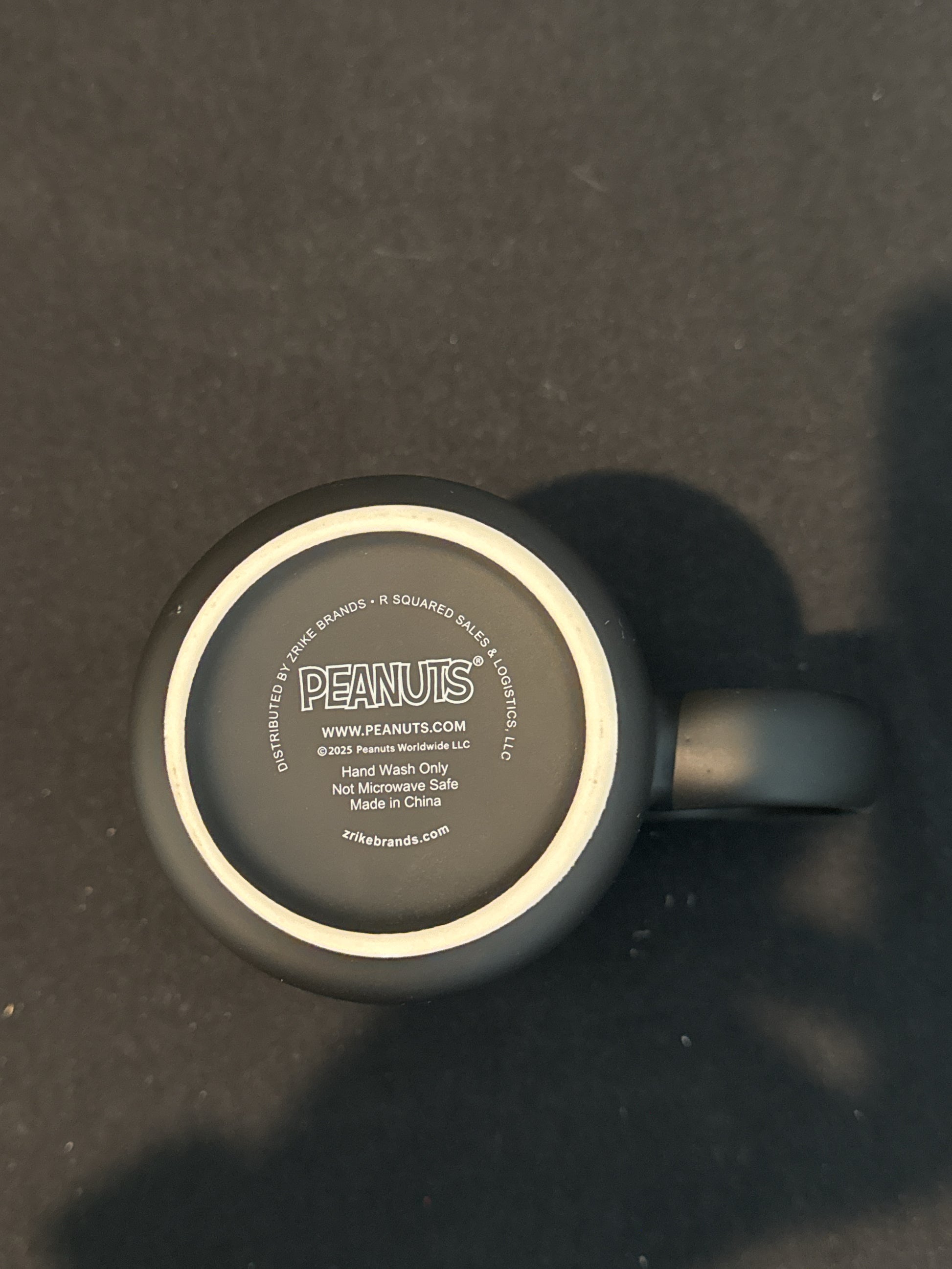 Peanuts Snoopy Vampire Woodstock Bat Halloween Costume Coffee Cup Mug Soft Feel 4.75" tall. New Excellent condition, pink interior, no chips or cracks. D5