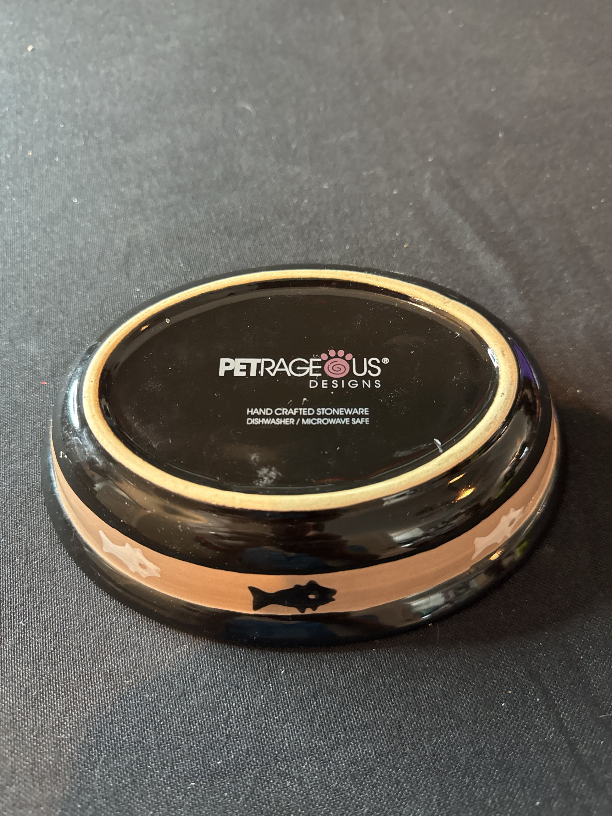 Petrageous Stoneware Oval Cat Dish With Fish 6.5" x 5". Excellent condition, no chips or cracks.