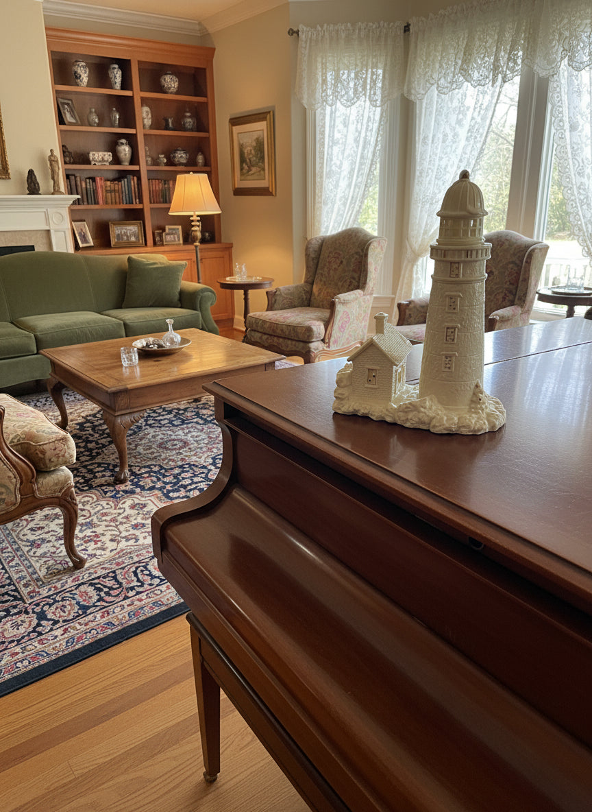 Porcelain Christmas Lighthouse White with Gold Accent Paint Excellent Condition 11" Tall